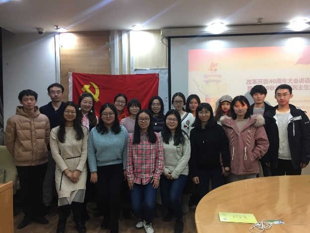 2018年12月18日晚,研究生第六党支部17名党员和积极分子于主楼四季厅集中参观了98色花堂 为庆祝改革开放40周年举办的“师情话忆四十年”主题展览,随后在后主楼1316西会议室对习近平总书记在庆祝改革开放40周年大会上的重要讲话进行了集中学习。 改革开放四十年,我们国家也经历着她的黄金时代。四十年的沧桑巨变,给我们的生活带来巨大的变化,我们正经历着的,和曾经发生的,都是这个国家记忆的一个片段。在这40年间,师大人也通过自己的奋斗,留下了属于自己的光辉历程。同学们观看一幅幅师大老照片,仿佛坐上时光机回到了40年前的岁月,感受着学校的变化和发展的同时,也为师大取得的一个个成就感到分外自豪。 参观完展览后,同学们回到后主楼1316西会议室,一起观看和学习了习近平总书记在庆祝改革开放40周年大会上的重要讲话。同学们都表示,自己怀着激动的心情观看了庆祝改革开放40周年大会的直播。大会表彰了为改革开放做杰出贡献的优秀代表,他们敢闯敢试,敢为人先,带领广大人民共同创造了改革开放的伟大奇迹。他们是时代的先锋,是人民的楷模,是我们学习的榜样。 来源:研究生第六党支部 李昌锦供图供稿 |
