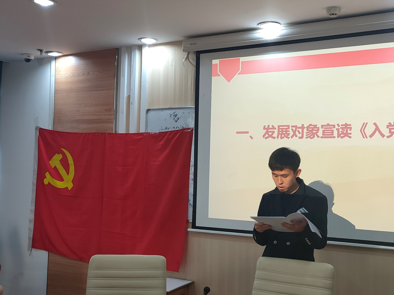 最后,党员同志进行无记名投票,并由支部书记宣读支部大会决议。最终,2名同志均被发展为预备党员,他们也分别发表了自己的感想,一致表示感谢支部其他同志的帮助和付出,自己在不断学习中对党的认识更深刻了,在和同学交流中也感觉到自己很多不足,希望今后有机会和大家多多学习,争做合格党员! 在会议接近尾声时,胡思源老师发表讲话,表示对支部发展大会流程和支部内积极活跃气氛的肯定,希望再接再厉。