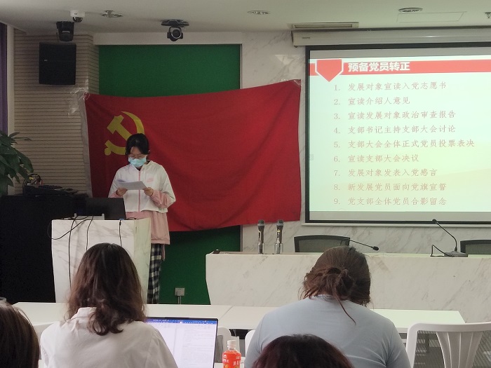 在此之后,其他同志结合实践和工作生活中的接触,分别对任思敏、刘恩宇和郭婷婷同志在思想、工作、生活等方面的表现进行了评价,并给予了肯定。随后,在场的正式党员对于三位同志的发展意见进行了无记名投票,三位同志的票数均达标,支部书记宣读《党支部会议决议》。
