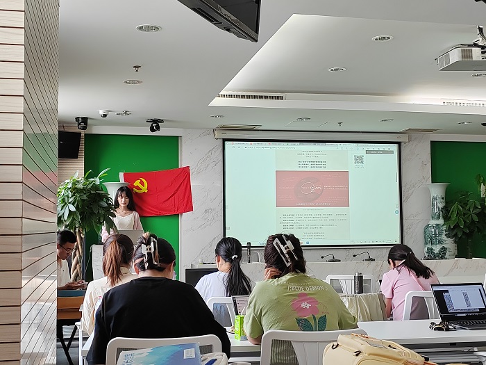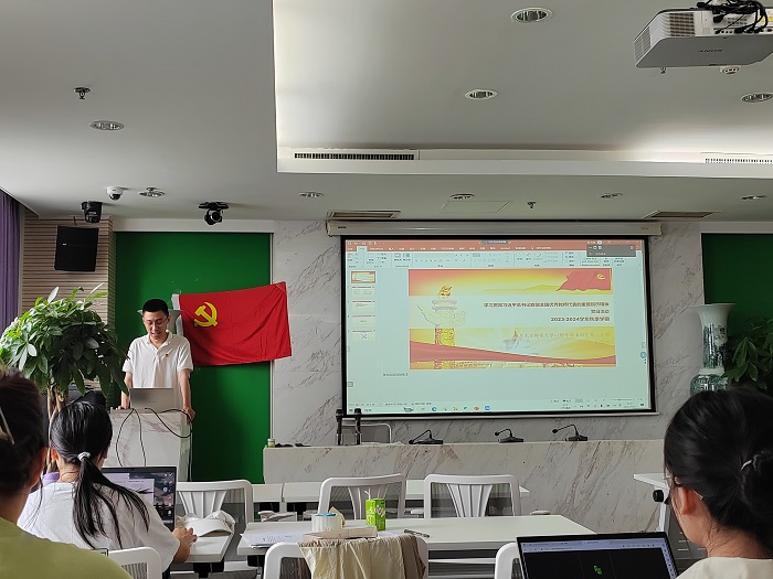 首先,全体起立,奏唱《国际歌》。随后,全体支部成员观看学习总书记重要致信有关报道。致信体现习近平总书记和党中央对教育以及教师的重视,提出要大力弘扬教育家精神,引发热烈感想。黄彤彤同志针对此前参加校学习致信精神座谈会的感想进行了分享发言,作为师范生党员,结合自己的支教实践经历做了阐述。程先楷同志对学校学习致信精神的部署做了传达,希望同志们将学习致信精神和党的二十大精神以及总书记关于教育的系列论述结合起来,和学校第十四党代会精神和学校人才培养结合起来,和自身生涯发展结合起来。