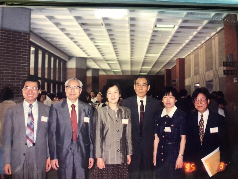 第二届华文社会心与教育测验学术研讨会,茶歇时间合照(左三为张厚粲教授,老师,其余左起为吴武典、黄坚厚、张春兴、陈淑美、何荣桂等老师)1993.5.2台北