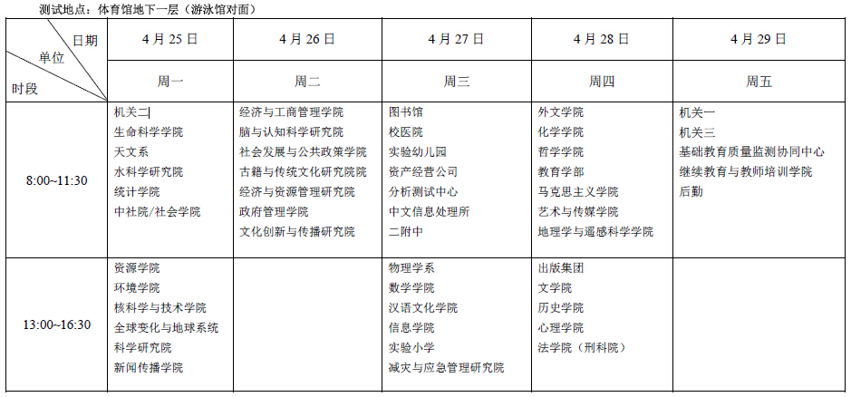 2016年教职工体质测试时间安排