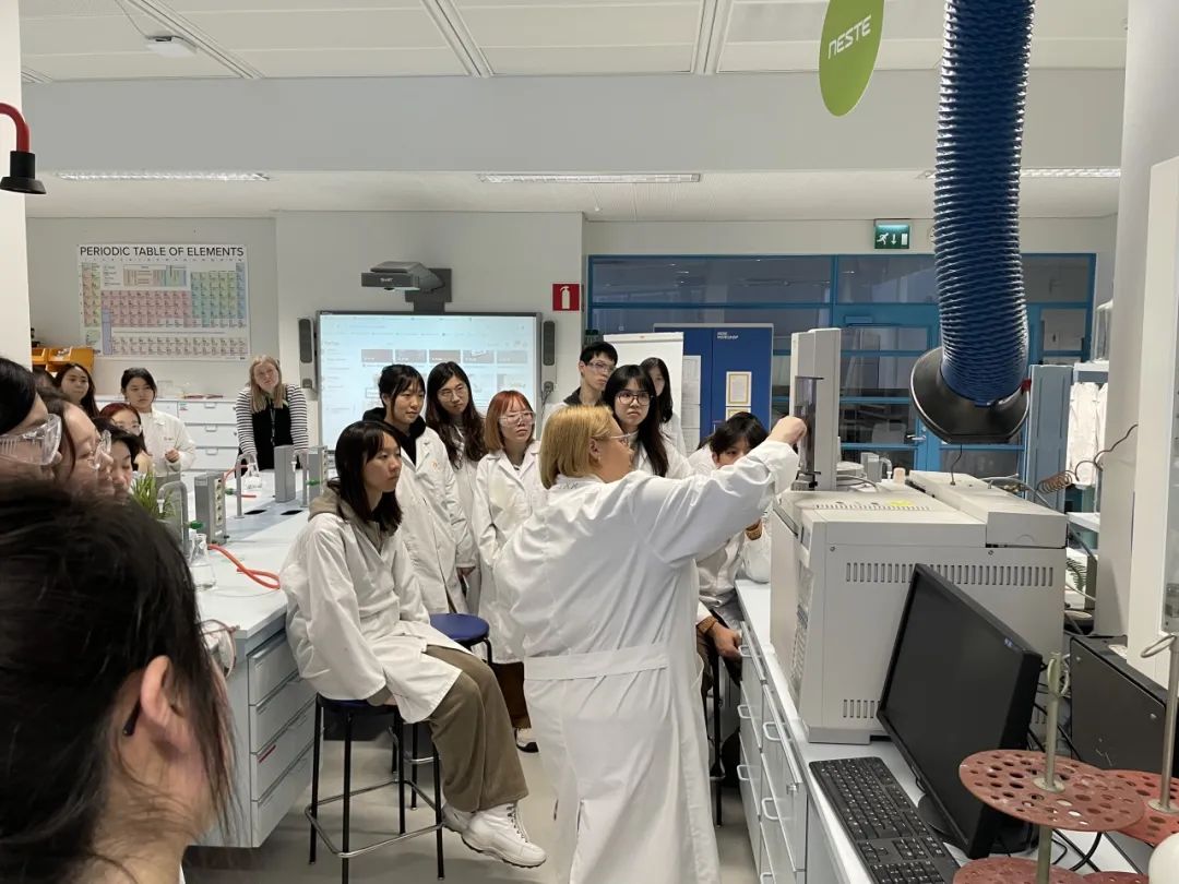 29日下午,Reija Pesonen教授向我们介绍了Gadolin化学实验室,带领我们动手体验科学实验。实验室以获得诺贝尔化学奖的芬兰化学家为名,接待全国各年龄段对科学感兴趣的学生,举办各类特色科学活动,致力让所有人领悟到生活中无处不在的化学,尤其让学生对化学产生兴趣。在她的指导下,我们动手尝试将干冰放入烧瓶,通过导管制作各种大小组合肥皂泡的有趣实验,切身体会到生活中有趣的化学现象,学习如何按照不同年龄段学生的能力引导话题,因材施教。