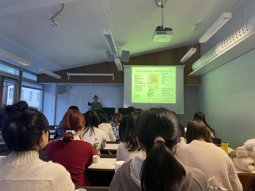 30日上午,Mari Tervaniemi教授介绍了关于音乐学习促进大脑发展的相关研究。芬兰为学龄前儿童设置了音乐兴趣课程,研究发现分析音乐需要大脑各个部分协调活动,音乐素养的提高同样有助于语言、认知能力、社会技能培养。但同时,教授强调音乐并不是促进这些能力发展的唯一办法,应当关注每个个体的具体情况,采取灵活的音乐韵律练习模式。教师应当以此为基础,在学习途中潜移默化地引入沟通能力、创造力、合作等技能训练,培养学生实现全过程学习(life-long learning)。在医疗方面,音乐还具备舒缓身心,治愈严重疾病(例如中风)的效果,因此也可以应用在老年人愈后干预等领域。