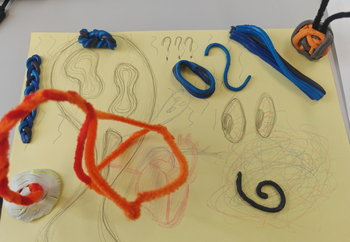 其次是有很多体验的机会。Dr Fiona Essig在讲解艺术疗愈时,Fiona向我们展示了一份案例资料,各小组讨论如何针对此案例设计一个幽默疗法的干预方案,并轮流与Fiona交流设计想法和问题。还能够根据案例资料,绘制患者的内心世界,各小组使用彩笔、纸、橡皮泥、铁丝等材料创造出了形形色色的能够展现案例特点的艺术作品,有的抽象震撼,有的直观易懂,但无论是怎样的作品,都体现了大家对所学知识的应用和自己独特的思考与创造。我也算是充分发挥自己十几年的抽象绘画功底,我真的真的好爱大家的精品创作以及巧妙有趣的设计灵感,超级喜欢这节课!