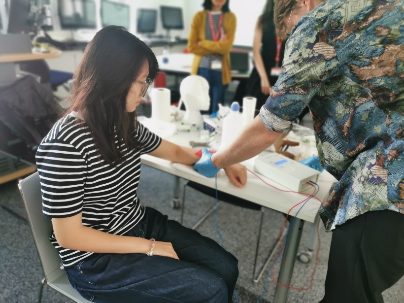 图1 与KCL初相识 2 课程学习与收获 本次暑期项目的课程围绕应用心理学展开,第一周聚焦于临床心理学案例及疗法,第二周是关于社会和决策心理学的应用,旨在培养我们的批判性思维和分析并解决问题的能力。课程由两位老师主要负责,分别是Francesca Cotier博士(负责临床心理学)和Claire Heard博士(负责社会和决策应用心理学)。两周的课程主要在Guy's Campus进行。 在第一周课程中,我们熟悉了基于团队的学习(Team-Based Learning)教学方法,通过破冰活动与小组成员熟悉起来。我所在的1A小组只有4个女生,我们对待课程都非常认真努力。我们学习了正念的相关知识,包括正念的起源、描述和评估基于正念的干预措施的有效性,包括基于正念的压力减轻(MBSR)和基于正念的认知疗法(MBCT)等,同时收获了正念呼吸练习和正念饮食等新奇有趣的体验;我们了解了用于评估疾病和临床问题的不同评估方法,在一周3次的Workshop中接触一个个鲜活的案例,在实践中运用所学知识解决问题;我们学习了痴呆症的音乐疗法和抑郁症的喜剧疗法,了解音乐如何唤起个人记忆以及如何用音乐唤起自我意识,如何用幽默来应对逆境;我们学习自闭症的临床表现和关键成因,了解当前有关自闭症神经生物学基础的研究;我们讨论电影和文学如何与心理健康建立联系,用艺术理解心理健康;我们学习了认知训练的基础知识,了解经颅直流电刺激(tDCS)的基本原理,并拥有了上手实操的宝贵经历;我们还学习了注意力缺陷多动障碍的临床定义、对日常功能的影响以及性别与诊断的可能差异,批判性反思未来如何解决这种性别差异……第一周,没有任何临床经验的我们沉浸在知识的海洋中,收获了宝贵的学习经验。