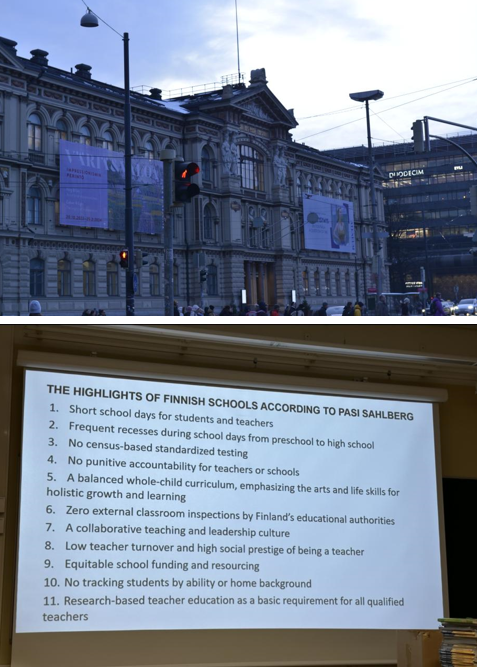 以上内容都是我在芬兰访学期间每天晚上记录下的心情,因为我相信有些感受只有当下最真实,而记忆也会随着时间的流逝慢慢黯淡。当我时隔十多天再去看自己写下的这些文字时,竟然觉得恍如隔世,仿佛是很久之前发生的事情,可能美好的事情在回忆里总是模糊的吧。 总结下来这趟旅程,关键词有两个:“教育”和“感激”。 “教育”是对这次芬兰之行的内容总结。我们探访了号称世界上教育最优的国度,深入走进了当地的教育机构,切身体验了这里的教育氛围,刷新了我对教育行业的认知,也引发了自己的思考。我不能说这里的教育一定是完美的,不能说没有竞争的社会环境就一定是更好的,而是这次访学让我看见教育的更多可能性,让我知道教育还可以是这样的。在当地中学校的时候,我们去参与的那次课堂里,老师和学生打成一片,学生在课上随意走动,讲台上坐着学生在讲课,我当时内心想的是“哇原来上课可以是这样的!”,但是我不能单纯地评判这样的课堂与国内相对更板正的课堂谁更好,我只能说合适的是最好的,而我所见所闻都会成为我不可磨灭的记忆中的宝藏。 在访学之前,我对于“教育”的理解是片面的,我以为教育是教会学生如何考高分、如何知识从一代人传递到下一代人…我们好像都忘了教育的初衷应该是培育一个“健全的人”而不仅仅是知识的传递,比起“考高分”,更重要的是“做好人”;比起“爱学习”,更重要的是“爱自己”;比起成为一个“完美的人”,更重要的是成为一个“完整的人”。 “感激”是我对于这次芬兰之行的情感评价。虽然之前也去过好几次欧洲游玩,但是都没有这次旅程让我有诸多感触,所以我不管在行程中还是行程结束后都在心里非常感激学部提供的访学机会,让我在自己独一无二的20岁就完成了人生清单中重要的一项,还见识到了很多“如果不是学部组织我永远都不会了解到”的角度;也很感激两位带队老师和芬兰当地所有老师一路上的关照,亦师亦友,一直像朋友一般与我们共同成长…我在春节期间看了一部电影叫《飞驰人生2》,里面有一句台词让我印象深刻:“我努力过很多次,但我知道机会只会出现在这其中的一两次。”对我而言,这次访学就是一个不可多得的“机会”,能让我站在学部搭建的平台上登高望远,结合这次访学的主题,又何尝不是对于我们这群来访的人一次全方位的“教育”呢?我在感受教育的过程中也接受了教育。 与每一位老师告别的时候,他们都说“欢迎下次大家再来芬兰!”,下次会是什么时候呢,我不知道,但我还是在心里埋下这样一颗种子,期待它早日发芽结果。