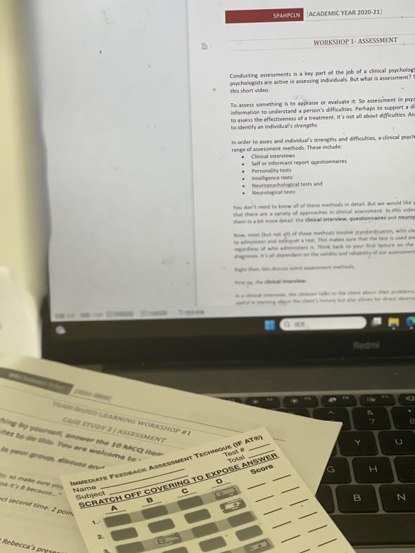 说实在的,没有人会不喜欢这张神奇的答题卡:它具有奖券一样的涂层,每一次挖掘都像是一场冒险,验证着你是否能在某个选项下面找到代表正确答案的五角星,这使得做题的过程无限趋近于购买一张彩票,一种十分精明地调动积极性与效能感的工具。但与此同时,对于调动大学课堂积极性的关注意愿本身甚至比答题卡这一点小小的设计更加可贵。 工作坊(Workshop)的形式也让人能够同时向外拓展和向内发掘自己。每次开始讨论之前讲师都会在台上强调:“这个问题没有最正确答案,请尽情探索每个选择的可能性”于是多边形的桌子变成了辩论场和头脑风暴基地,,思想的火花向四面八方发散。对于我来说,进入大学课堂的两年我仿佛已经习惯在阶梯教室中面对台上的侃侃而谈沉默聆听,忘记了该如何在课堂上提出一个问题并寻找它的解决方案,但问题和假设从来不是研究和课题的专属,如果没有问题,有哪里会有它的答案?