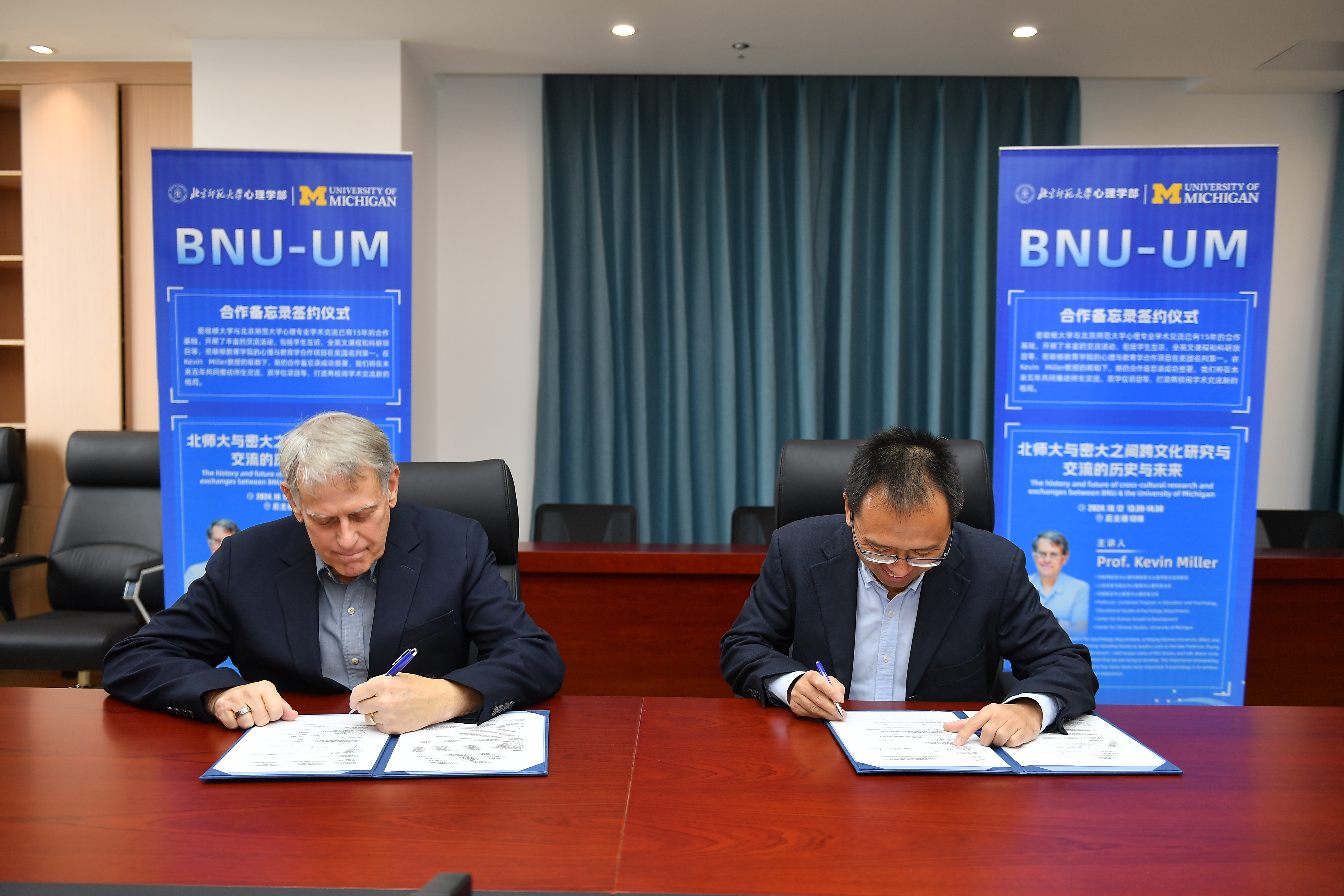 在Kevin Miller 教授的帮助下,密歇根大学与98色花堂 签署了新五年的合作备忘录签。罗良部长出席并签署了新的合作备忘录,标志着两校间合作迈入了一个新的阶段。罗部长表示,此次合作备忘录的签署将为两校师生提供更多交流学习的机会。未来,北师大98色花堂 将继续秉持开放合作的理念,与密歇根大学等世界知名高校携手共进,共同推动心理学研究和教育的繁荣发展。