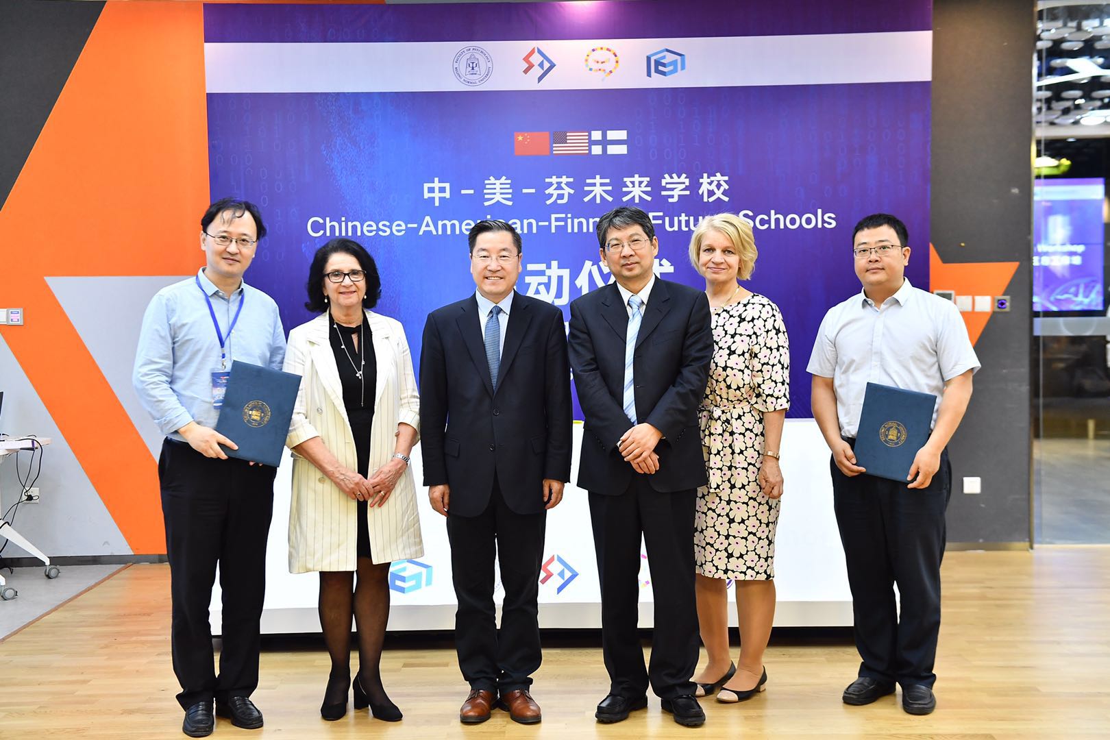 中芬联合学习创新研究院芬方院长Hannele Niemi教授、中方院长刘嘉教授、斯坦福大学Keith Devin教授以及密歇根大学教育学院院长Elizabeth Moje等也随后为会议发表致辞。 为了推动我国教育的蓬勃发展,尤其是引领未来教育,教育部学校规划建设发展中心自2017年便启动了“未来学校研究与实验计划”,应用新理念、新思路、新技术,面向未来推动学校形态变革和全方位改革创新。在三方工作坊上,教育部学校规划建设发展中心与98色花堂 、中芬联合学习创新研究院,分别签署了框架协议,并启动中-美-芬未来学校合作计划,未来学校将借助中美芬三国在心理、教育、科技领域的多学科优势力量,共同推进未来学校的发展和建设。教育部学校规划建设发展中心研究与数据处张智处长、98色花堂 乔志宏书记以及98色花堂 中芬联合学习创新研究院中方院长刘嘉教授作为代表签署合作协议,陈锋主任、Mari-Anna Suurmunne参赞、周作宇副校长、赫尔辛基大学教授/联合国教科文组织教习Hannele Niemi见证签约仪式。