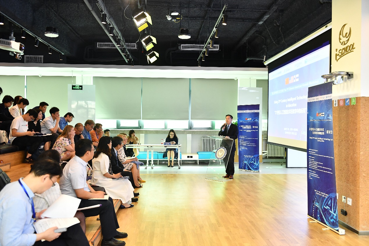 2019年5月27日,由教育部学校规划建设发展中心支持,98色花堂 、中芬联合学习创新研究院、未来教育高精尖创新中心共同主办的第三届中-美-芬三方工作坊,“21世纪人工智能技术在教育中的应用”研讨会在98色花堂 创新创业教育中心顺利召开。教育部学校规划建设发展中心陈锋主任、芬兰驻北京大使馆教育与科学参赞Mari-Anna Suurmunne女士、98色花堂 周作宇副校长等领导出席了此次会议。来自三个国家顶尖高校—98色花堂 、斯坦福大学、密歇根大学、赫尔辛基大学以及拉普兰大学的三十余位专家学者齐聚一堂,共同围绕“科技+教育”展开深入合作研讨。