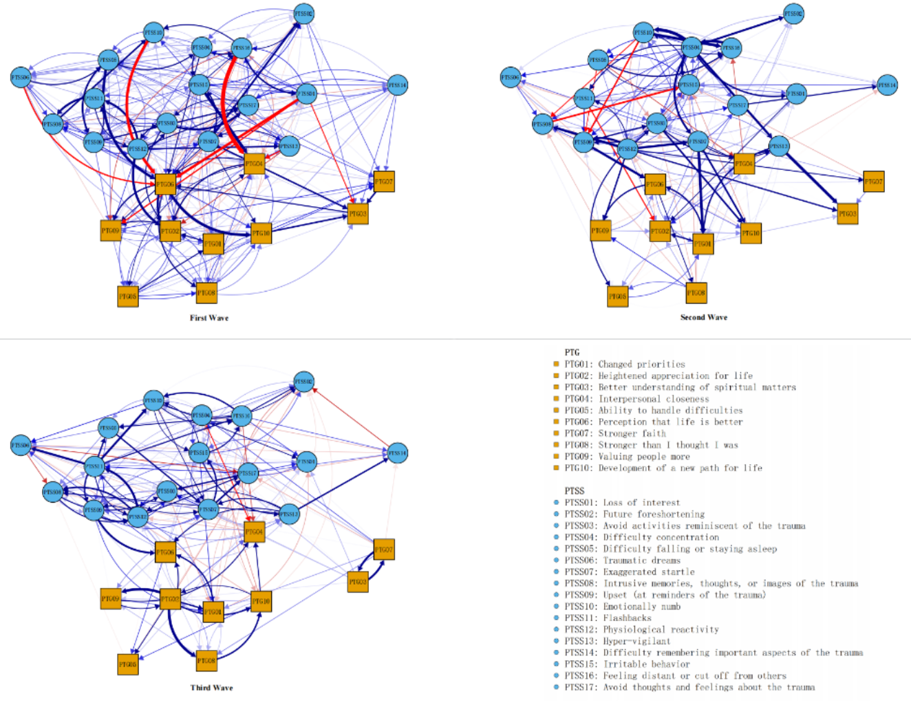 伍新春(通讯作者)和王文超(第一作者)课题组日前在国际知名期刊Applied Psychology: Health and Well-Being(IF=6.9)上发表论文,借助交叉滞后网络模型,揭示了汶川地震后的10年间青少年创伤后应激障碍症状(PTSS)和创伤后成长(PTG)间的相互作用关系。 研究团队对汶川地震极重灾区的青少年进行了为期10年的多次调查,建立了震后短期(1-2年)、中期(3.5-4.5年)和长期(8.5-9.5年)的队列数据库。利用交叉滞后网络分析模型分别构建了震后短期、中期和长期3个PTSS与PTG的共存网络,以考察地震后的不同时期两者的相互作用。