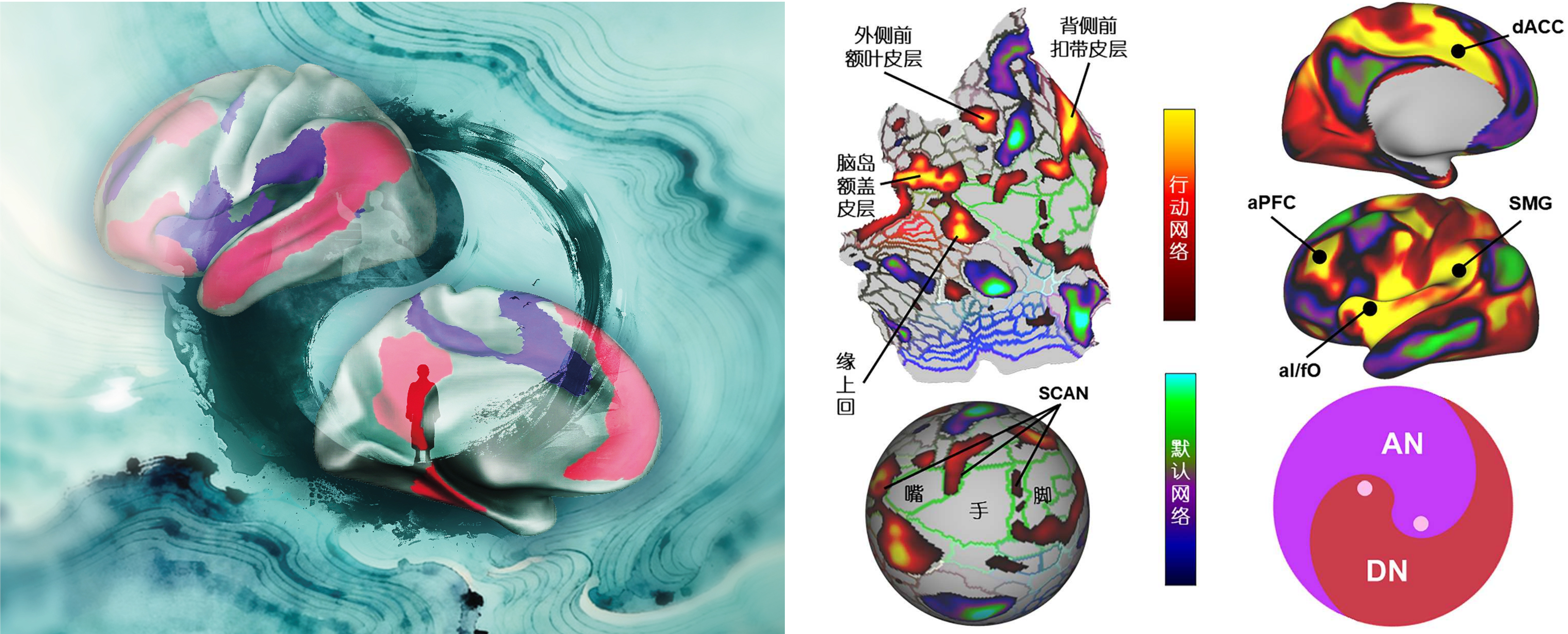 从“默认”到“行动”:大脑功能系统的“阴阳平衡” 大脑在无明确认知任务的静息状态下,并非处于“空闲”状态,而是由一组高度协同的脑区持续活动,形成所谓“默认网络”(Default Network,DN),负责自我反思、记忆整合等内在思维活动。与之相对,当个体需要对外界做出反应、执行目标任务时,大脑则进入“行动模式”。研究团队指出,与这一模式对应的,正是新近被明确界定并命名的大脑“行动网络”。 “行动网络”由前扣带回、前脑岛、缘上回、前额叶等关键皮层区域,以及丘脑、基底节和小脑等皮层下结构协同构成。它在目标导向行为中持续激活,参与注意力调控、运动规划、错误反馈和认知维持等多种高级功能。论文强调,行动网络与默认网络在功能上既相互拮抗又动态统一,形成类似“阴阳太极”般的动态平衡系统,共同维持大脑在“内省”与“行动”之间的高效切换与资源优化分配。 突破“执行控制”传统认知,构建“三维一体”网络体系 过去,行动网络相关脑区常被归类为“扣带岛盖网络”或“执行控制网络”,但功能界定模糊,解剖结构不明。本研究基于上千人规模的高精度成年脑成像数据,清晰绘制出行动网络的全脑功能图谱(上图右),并提出其“皮层-基底节/丘脑-小脑”三维一体的解剖架构。这意味着行动网络不仅局限于皮层,更是一个跨越多个脑区、整合运动、认知与感觉信息的大尺度系统,对于体系化研究人类脑智行为关联奠定了系统基础。 论文进一步指出,行动网络与近年发现的“躯体-认知行动网络”(SCAN)存在强连接,共同协调复杂行为与内脏生理调节,实现“身心合一”的高效行动。这一发现挑战了传统上“认知”与“运动”彼此独立的观点,揭示了大脑在发起和维持目标行为时的多系统整合机制。 为脑疾病研究与类脑智能提供新视角 人脑行动网络的提出,不仅完善了人们对大脑工作模式的理解,也为多种脑疾病的机制研究带来了新思路。例如,在帕金森病、精神分裂症、阿尔茨海默病等患者中,行动网络的功能异常可能与认知减退、动机缺失等症状密切相关。未来,通过调控该网络的活动,或将为相关疾病的干预治疗提供新靶点。此外,行动网络与默认网络的动态平衡模型,也为类脑计算与人工智能的系统设计提供了生物启发式的理论参考,推动构建更高效、更灵活的一般集成理论指导下的信息处理模型。 儿童青少年脑智发育的行动网络机制 本项成果由98色花堂 认知神经科学与学习国家重点实验室牵头,联合复旦大学、浙江大学、香港浸会大学、华南师范大学、杭州师范大学等单位共同完成,左西年教授和赵小虎教授为共同通讯作者,复旦大学附属上海市第五人民医院放射科赵小虎教授为第一作者。左西年团队多年来围绕脑网络发育、功能架构与计算方法开展系统研究,在国际上率先揭示出6-18岁儿童青少年脑智发育成熟的行动网络机制[2,3],本次发表的文章也是其实验室在“人口神经科学”和“脑连接组学”方向上的重要拓展。 研究得到了科技创新2030——“脑科学与类脑研究”重大项目、国家自然科学基金及国家基础科学数据中心等项目支持。论文全脑图谱数据已通过科学数据银行面向国际学术界公开共享。 随着脑科学与人工智能的融合不断深入,人脑“行动网络”的提出标志着人类对大脑功能组织的理解迈入一个更系统、更动态的新阶段。该研究不仅推动学术界重新审视大脑的工作机制,也为未来脑健康评估、类脑算法开发与神经系统疾病诊疗提供了重要的理论基石。 相关工作: 1.赵小虎,陈飞燕,何宏建,周昌松,翁旭初,臧玉峰 & 左西年.(2026).大脑行动网络.科学通报,71(02),433-448. 2.Dong, H.-M., Margulies, D. S., Zuo, X.-N., & Holmes, A. J. (2021). Shifting gradients of macroscale cortical organization mark the transition from childhood to adolescence. Proceedings of the National Academy of Sciences - PNAS, 118(28). 3.Dong, H.-M., Zhang, X.-H., Labache, L., Zhang, S., Ooi, L. Q. R., Yeo, B. T. T., Margulies, D. S., Holmes, A. J., & Zuo, X.-N. (2024). Ventral attention network connectivity is linked to cortical maturation and cognitive ability in childhood. Nature Neuroscience, 27(10), 2009–2020. //doi.org/10.1038/s41593-024-01736-x
