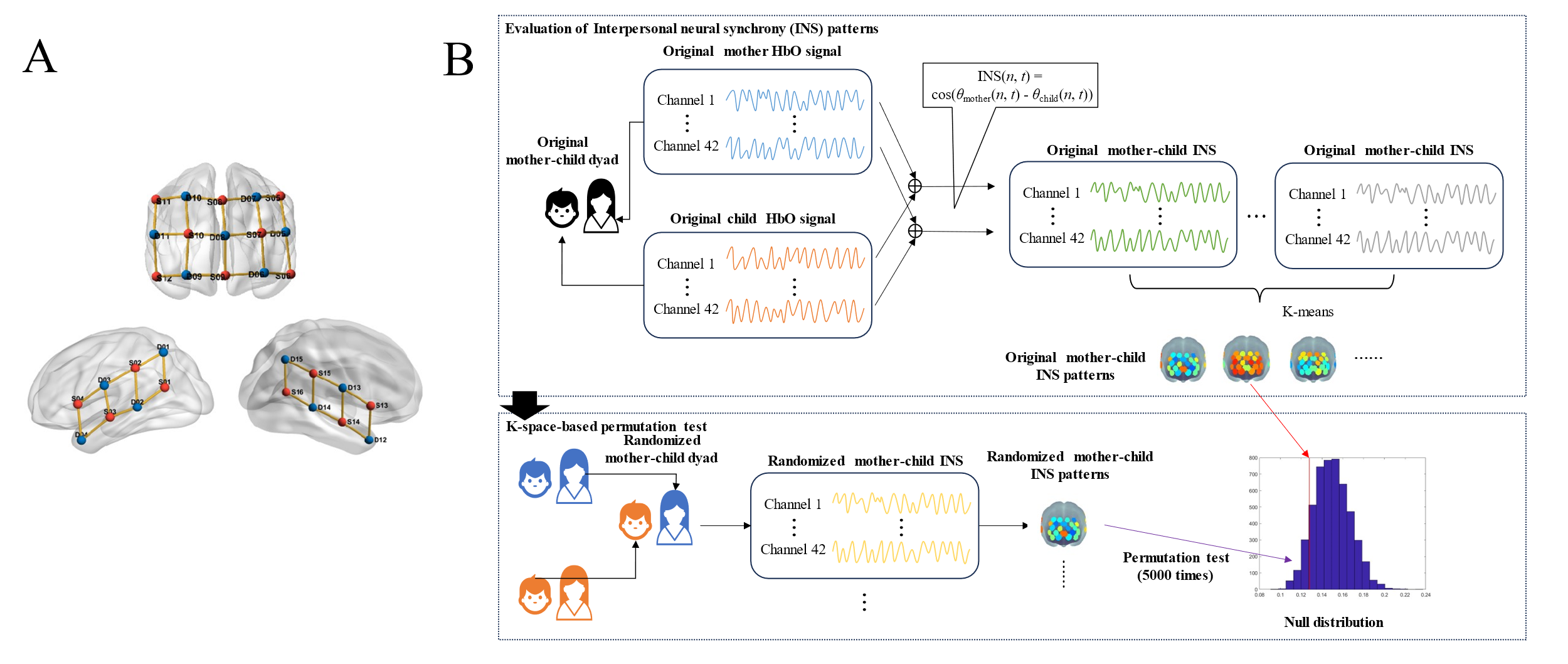(A)fNIRS光极排布。(B)数据分析过程。