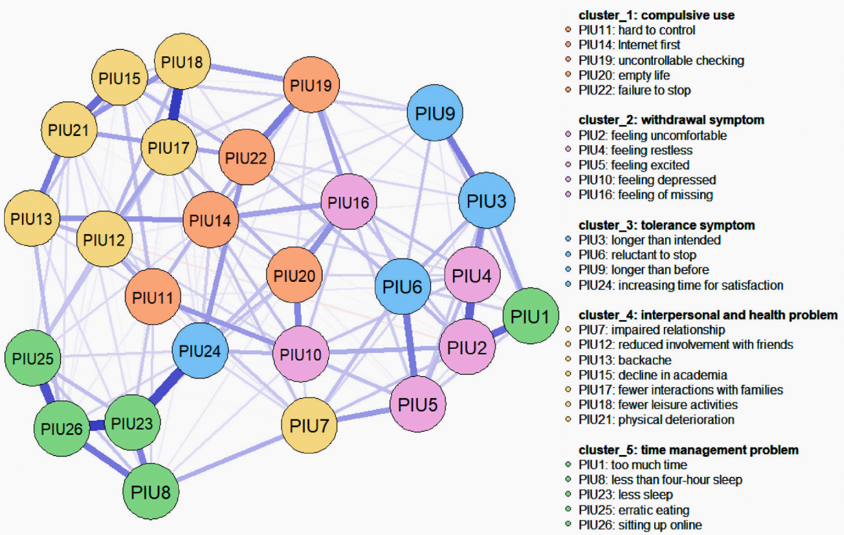 论文信息: Liu, S., Xu, B., Zhang, D., Tian, Y., & Wu, X.* (2022). Core symptoms and symptom relationships of problematic internet use across early, middle, and late adolescence: A network analysis. Computers in Human Behavior, 128, 107090. //doi.org/10.1016/j.chb.2021.107090 |