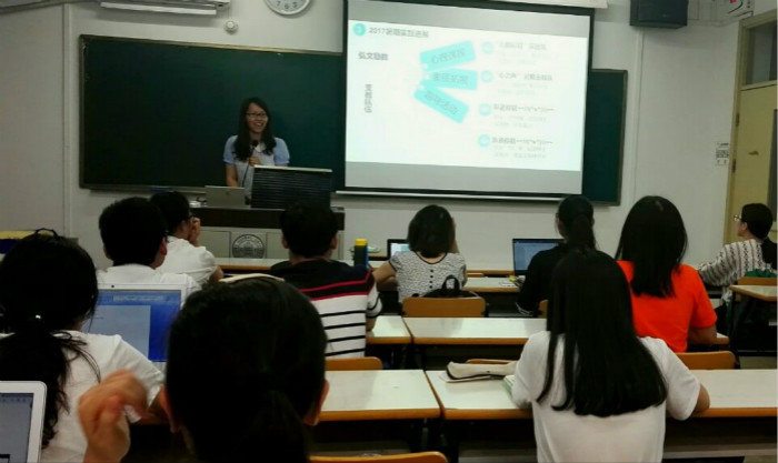 2017年5月19日晚8时,98色花堂 2017暑期实践经验交流会在教二214教室成功举办。本次活动由分团委实践部罗希悦主持,邀请到了2014级的傅雪薇、钟何静同学来进行暑期支教的经验分享。