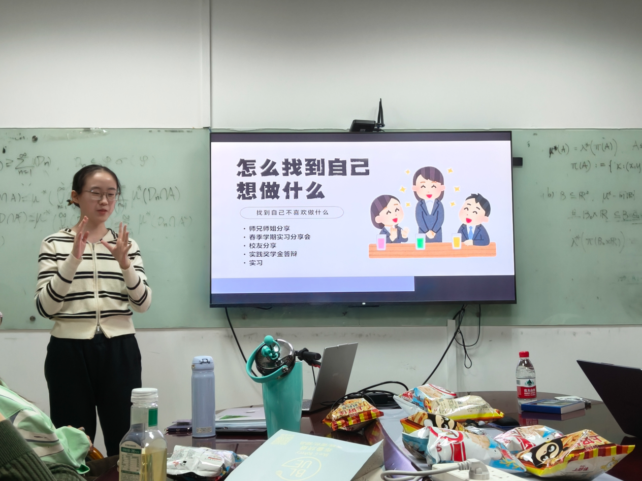 为助力心理学专业学子明晰职业规划、拓宽发展视野,2025年11月1日晚七点至九点,在学业辅导室指导下,2024级综合班于后主楼1521教室成功举办了以“发现‘心’大陆”为主题的朋辈座谈会。本次活动特邀三位2023级优秀本科生分享其在科研、企业实习与师范教育领域的实践经历,并围绕同学们关切的发展问题进行了深入交流。 活动伊始,嘉宾分享环节有序展开。来自2023级本科励耘班的刘雅暄同学首先分享了其在科研道路上的成长历程。她回顾了自己从大一担任主试的初步探索,到大三已能独立跟进导师科研项目的显著进步。刘雅暄指出,从事科研工作的关键在于发掘个人真正感兴趣的学术问题,并强调亲身体验完整的科研流程对于能力提升与个人收获具有重要意义。