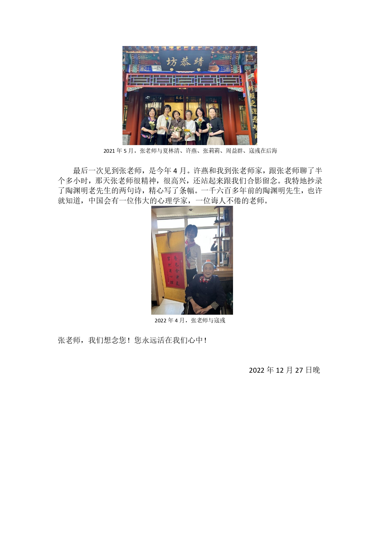 | 悼念张先生