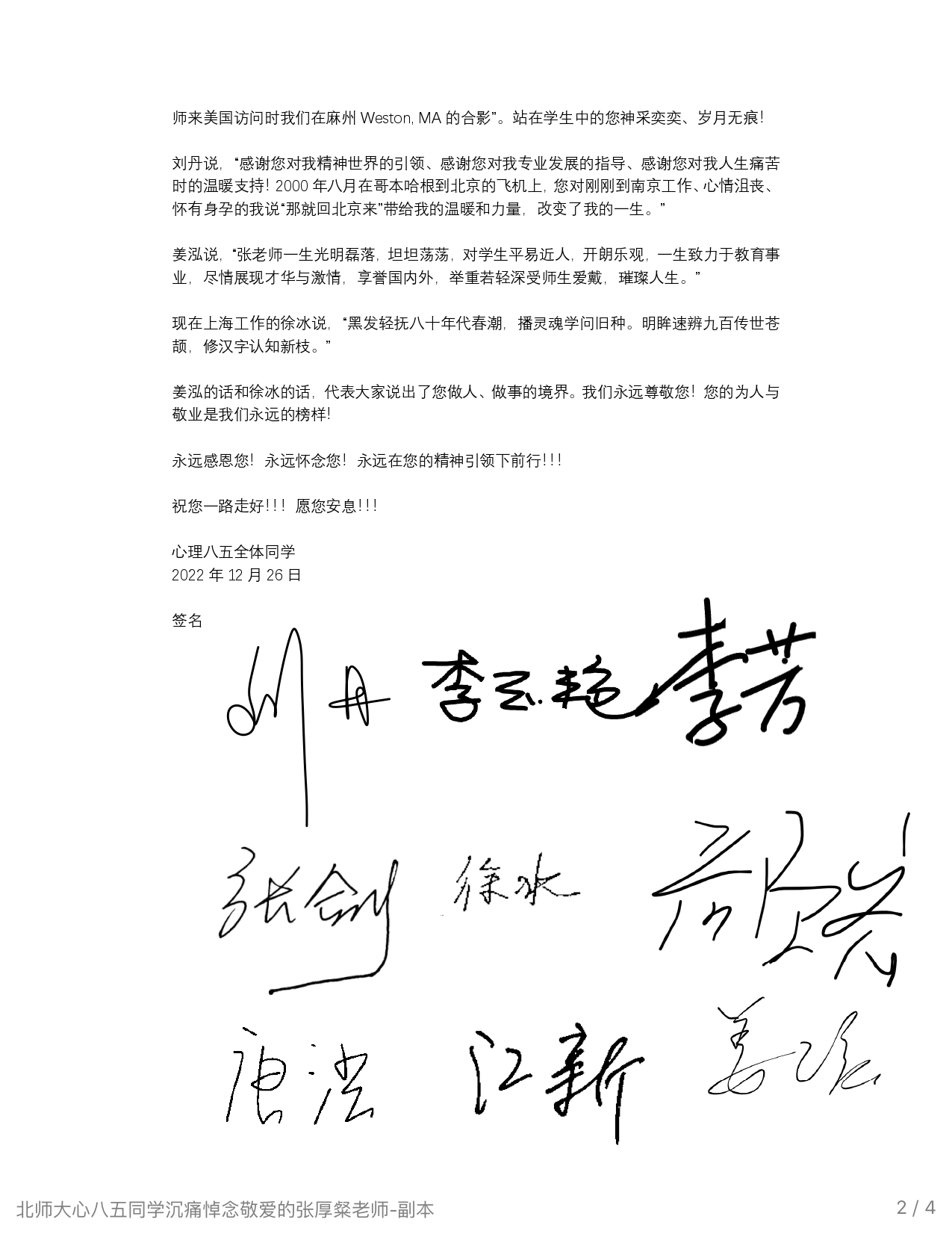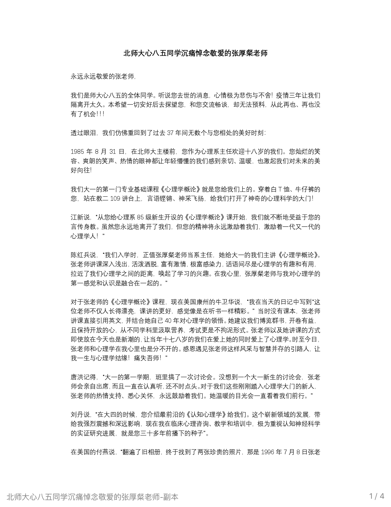 纪念文章 | 北师大心八五同学沉痛悼念敬爱的张厚粲老师