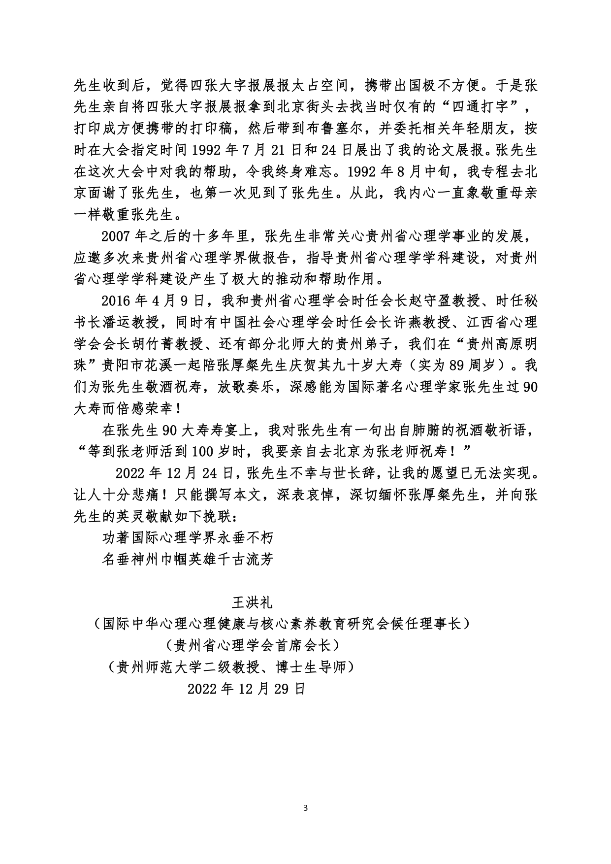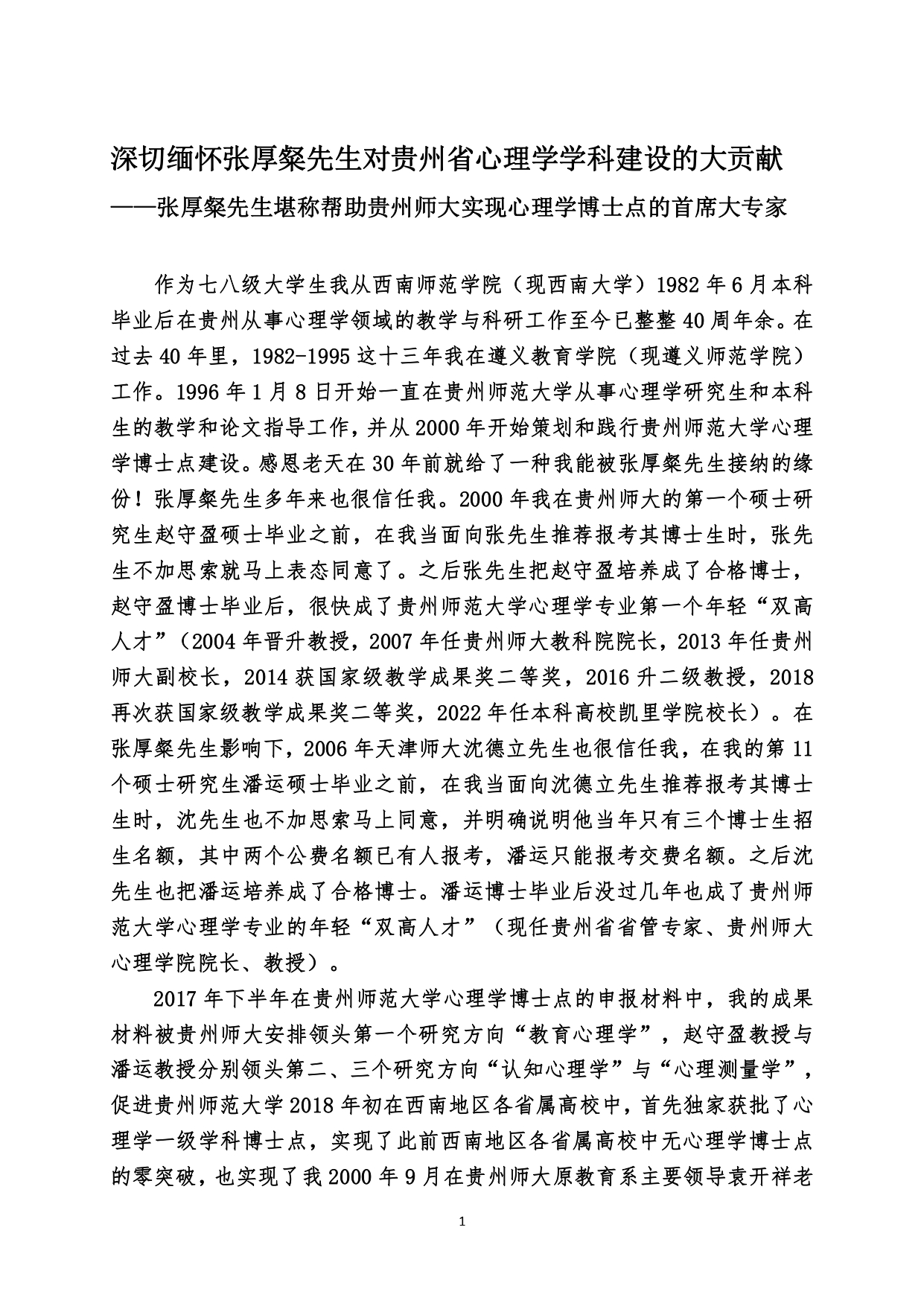 纪念文章 | 深切缅怀张厚粲先生对贵州省心理学学科建设的大贡献