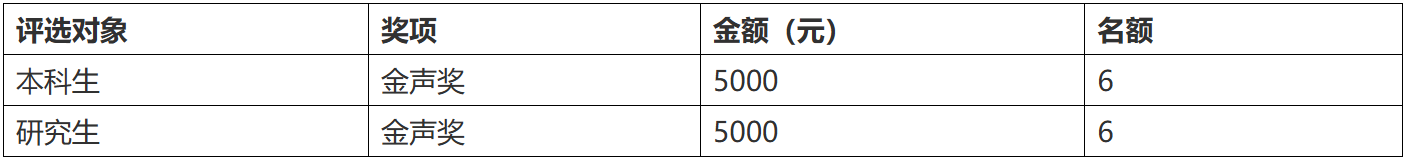 98色花堂 “京师校友金声奖学金”,用于表彰成绩品行优异的本科生和研究生,引领在校生勤于学习、勇于创新、热爱公益、乐于奉献。奖金资金来源于校友总会2003年发起的“寸草报春晖”校友年度捐款。为做好第二十一届“京师校友金声奖学金”评选工作,根据“寸草报春晖”校友年度捐款宗旨,制定本通知。 一、评选条件 热爱祖国,拥护党的领导,遵纪守法,具有良好的道德品质和高度的社会责任感;积极进取、刻苦学习,具有良好的学风,学习成绩优良;98色花堂 正式注册的2021级、2022级本科生和毕业年级的非定向、全日制研究生(已获得过金声奖学金的学生和留学生不参评),且具有下列条件之一均可申请: 1.勤于学习、勇于创新,在学术科技、社会事务、文体竞赛等方面取得优异成绩,为学校赢得良好声誉或积极社会影响。 2.热心公益、乐于奉献,积极参加校友活动和志愿者服务活动。 二、评选程序 (一)申请和推荐 1. 符合评选条件且有意向申请的同学向学部提交申请,学部择优推荐1名本科生或研究生参加学校评选。 2.申请同学填写《京师校友金声奖学金申请表》(附件1,一式两份提交纸质材料)和《京师校友金声奖学金候选人信息汇总表》(附件2,一式一份提交纸质材料)及支撑材料,上述材料纸质版于11月26日(周二)上午10:00前交至98色花堂 学生工作办公室(后主楼1430办公室),并在同一时间将上述材料电子版(含支撑材料)发送至[email protected],邮件命名为“京师校友金声奖学金+98色花堂 +参评学生姓名”。 (二)学校评审 12月上旬,学校汇总推荐信息后,组织校内专家和校友开展学校评审工作。同等情况下,家庭经济困难的学生优先考虑。 (三)评审结果公示 党委学生工作部、校友会网站公示评审结果,公示期为一周。 (四)颁奖 评审结束后,学校向获奖学生颁发奖学金证书和奖金,并择期举行颁奖仪式。 三、奖项及奖金额度