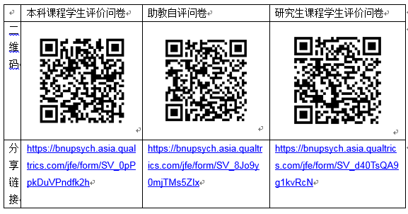 各位课程助教: 大家好!首先感谢大家半年来的辛苦工作! 我们将从第本周开始助教考核工作,请登录邮箱[email protected]查看考核详情,并获取您所需要的所有表格。如有疑问请及时借助助教微信群或拨打58804073进行咨询。 一、考核说明:所有助教均需完成期末考核,考核主要分为学生评价、教师评价、自我评价、管理者评价四个部分,整个评价系统将从2017年6月14日至2017年6月30日开放,关闭后将不能填写。 1.学生评价:学生评价采用电子问卷方式。建议在课堂上用ppt呈现二维码(见通知最后图例),或者分享链接,占用几分钟时间让同学们集中完成评价。本科课程满足50%的问卷填写视为有效,研究生课程满足80%的问卷填写视为有效。 2.自我评价:填写电子问卷。 3.教师评价:请任课教师填写评价表并签字。 4.管理者评价:此部分问卷由教务老师填写,助教不用参与。 二、材料提交说明:1.电子版材料:助教工作总结、课程资可分享资源。 助教工作总结不少于1000字,包含以下三部分内容:(1)工作内容总结(2)个人收获成长(3)工作建议和意见。同时,总结中要附上教师上课、学生评教、批改作业、作业量、答疑等能反映助教日常工作的照片材料。 课程可分享资源:在承担助教的过程中,分享给下一任授课助教的资源,(例如书目、电子资源等)。 命名为:序号+助教名字+课程名称,发送至[email protected]。 2.纸质版材料:交至1405,崔艳丽老师处。 (1)教师评价表(需要授课老师签字) (2)助教工作总结 (3)培训记录表(如实填写参加培训情况,包含学校和学院培训) (4)课程可分享资源简要说明。 3.提交时间:电子版和纸质版材料均需在2017年7月10日10点之前提交,过期将失 去优秀助教申报评选资格,并影响补贴按时发放。 三、优秀助教申报说明:欢迎大家积极申报优秀助教。有意申请优秀助教的同学除上述材料外,还需提交《优秀助教申请表》一份(纸质版),截止时间为课程结束后两周内。我们会在学生评价、老师评价、个人总结、课程抽查、管理者评价、等综合评测基础上择优评出。具体评选方法参考本科生优秀助教评优办法,研究生优秀助教评优办法。