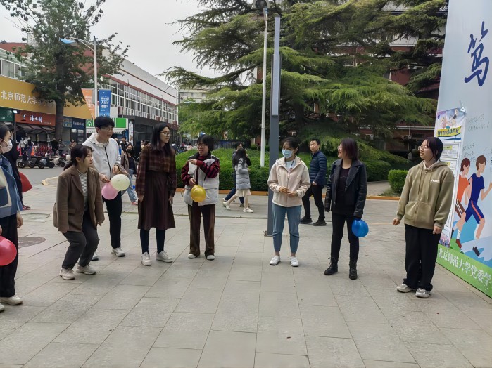 在活动开始前一小时,椰丝团的成员和黄利老师就前往邱季端南侧开始布置场地,并在现场预热,气球和海报已经吸引了很多同学来围观。