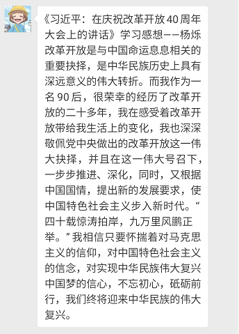 | 【党建】研究生第十五党支部学习《习近平:在庆祝改革开放40周年大会上的讲话》 |