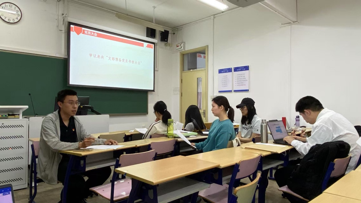 经过支部全体正式党员的无记名投票表决,大会一致同意接收窦佳宁、高星灿、滕缘和王陈龙等四位同志为中共预备党员。四位预备党员发表了各自的入党感言。 随后,在全党开展深入贯彻中央八项规定精神学习教育之际,支部书记程先楷同志为新发展预备党员们作了警示教育,坚决防止入党后存在松懈心理,也对党员们提出了具体的要求和期待,希望支部全体党员未来更严格要求自己,积极参加支部活动,在学习生活中发挥先锋模范作用。 全体与会党员最后还讨论、审议并表决通过了支部新制定的“预备党员考察办法”,从学时考核、思想汇报深度、党课科研分享以及支部工作参与四个方面对预备党员提出更高要求,补足党员发展转正全流程严格考核的“最后一环”。至此,支部2024-2025学年春季学期预备党员发展大会圆满结束!