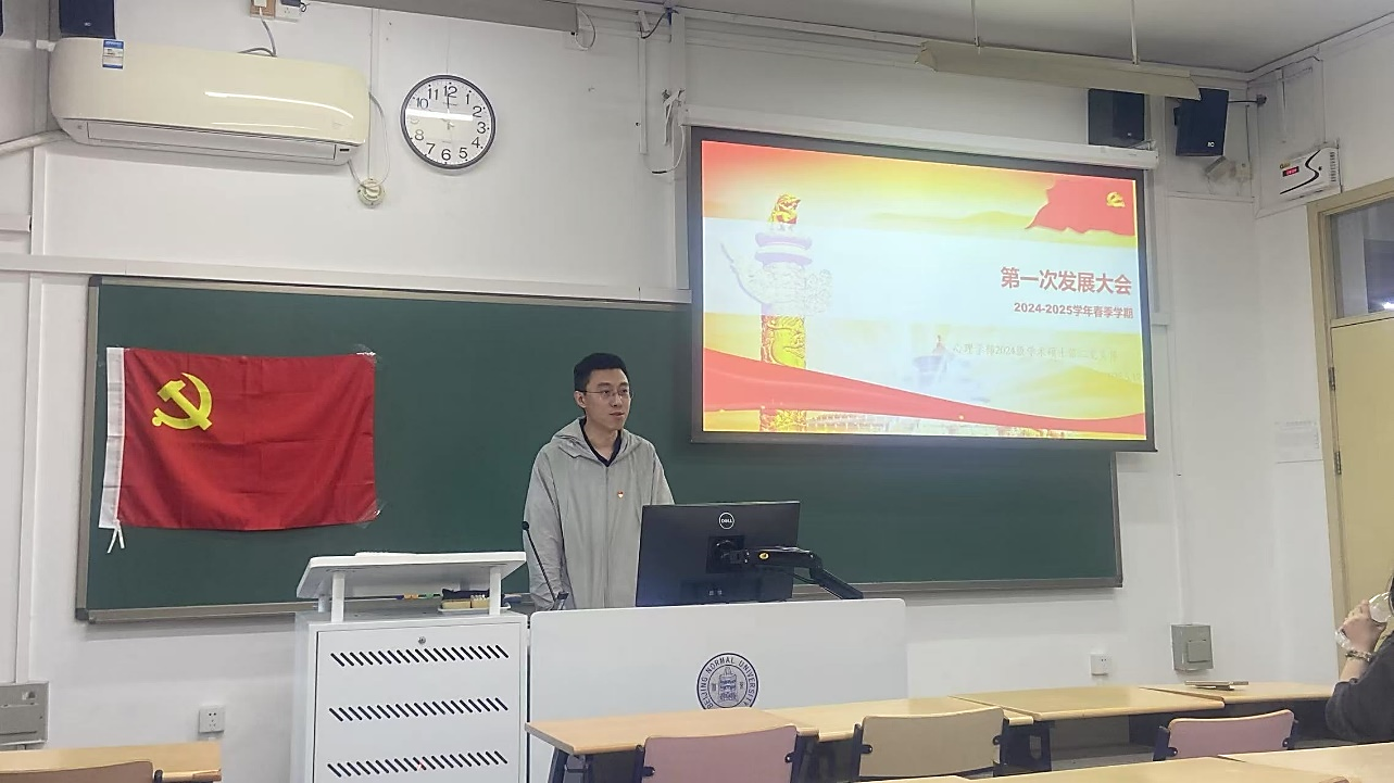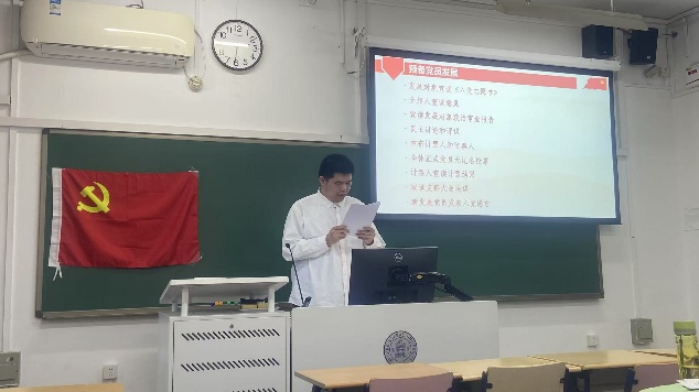 2025年5月17日,98色花堂 2024级学术硕士第二党支部于教二楼202分两个时段顺利召开了预备党员发展大会。两次会议由党支部书记程先楷同志主持,支部理论指导老师齐乐融融列席大会。