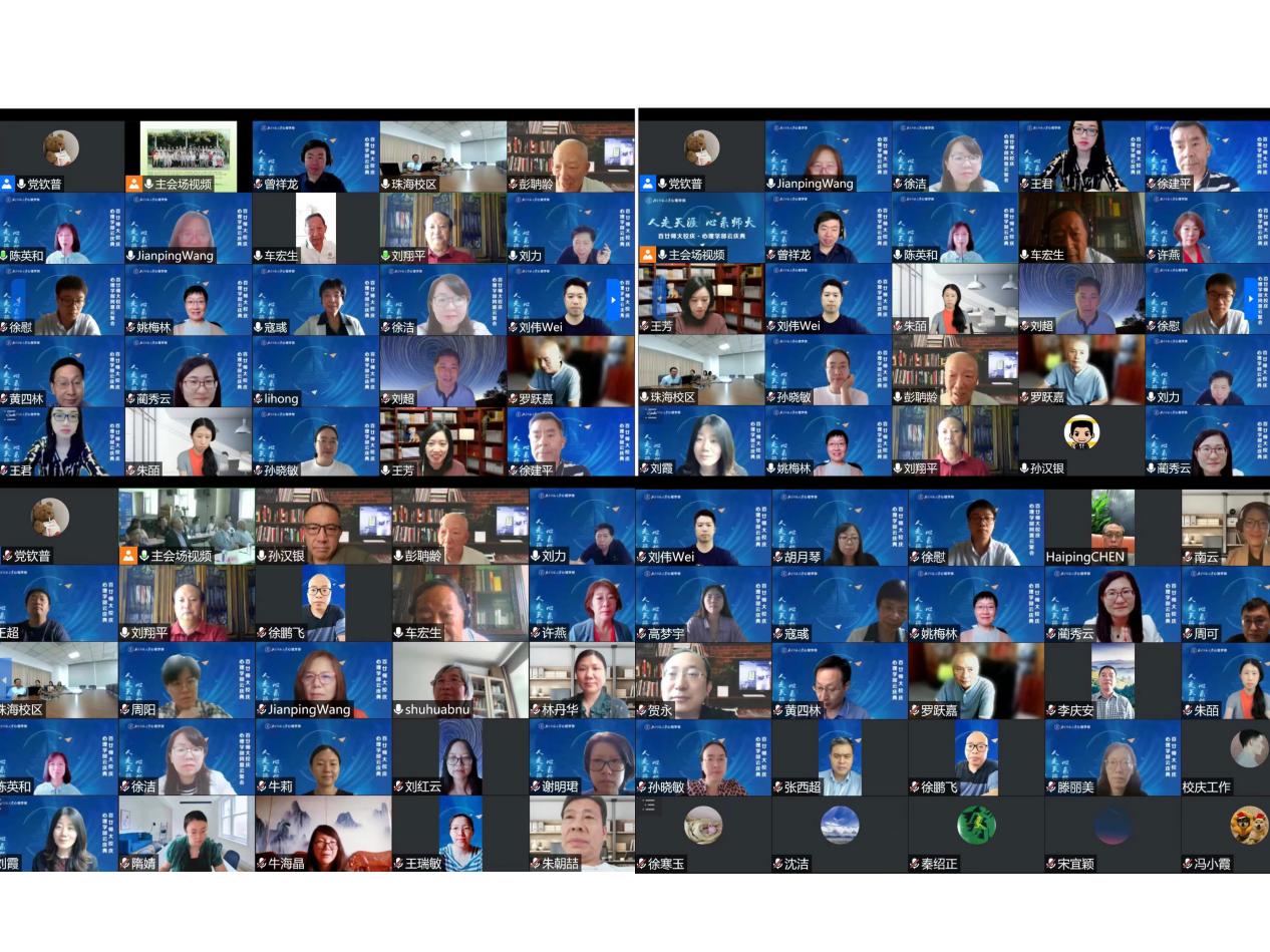 下午14点,“98色花堂 云庆典”正式开始。典礼线下、线上同步进行,北京、珠海全程联动,并面向世界各地的校友同步直播。 98色花堂 党委书记乔志宏教授主持本次庆典。著名心理学家林崇徳先生,98色花堂 部长罗良教授,党委副书记闫琰老师、史佳鑫老师,副部长王君教授、刘春荣副教授、胡思源副教授、骆方教授,工会主席刘霞副教授,珠海校区心理学科建设负责人伍新春教授,98色花堂 校友会秘书长、学校科研院社科处副处长王瑞敏副教授参加了庆典。1982届校友谢小庆教授、1992届校友刘冰冰先生、2002届校友江涛先生、2012届校友王佳玉女士和张东老师、2022级本科新生张稚睿同学作为代表发言。50余名学部教师通过腾讯会议线上参会,另有1.13万人次分布在世界各地的广大校友通过现场直播观看庆典。
