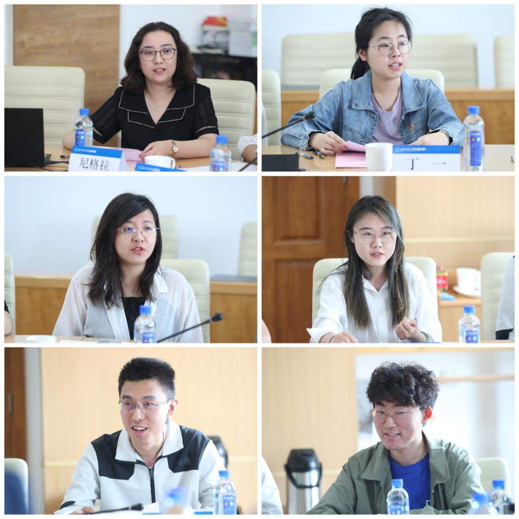 来自本硕博不同年级和方向的学生代表结合个人学习生活实际,围绕思想认识、就业求职的问题与困惑、对于学校学生思政和就业工作的需求与建议等进行了交流发言。