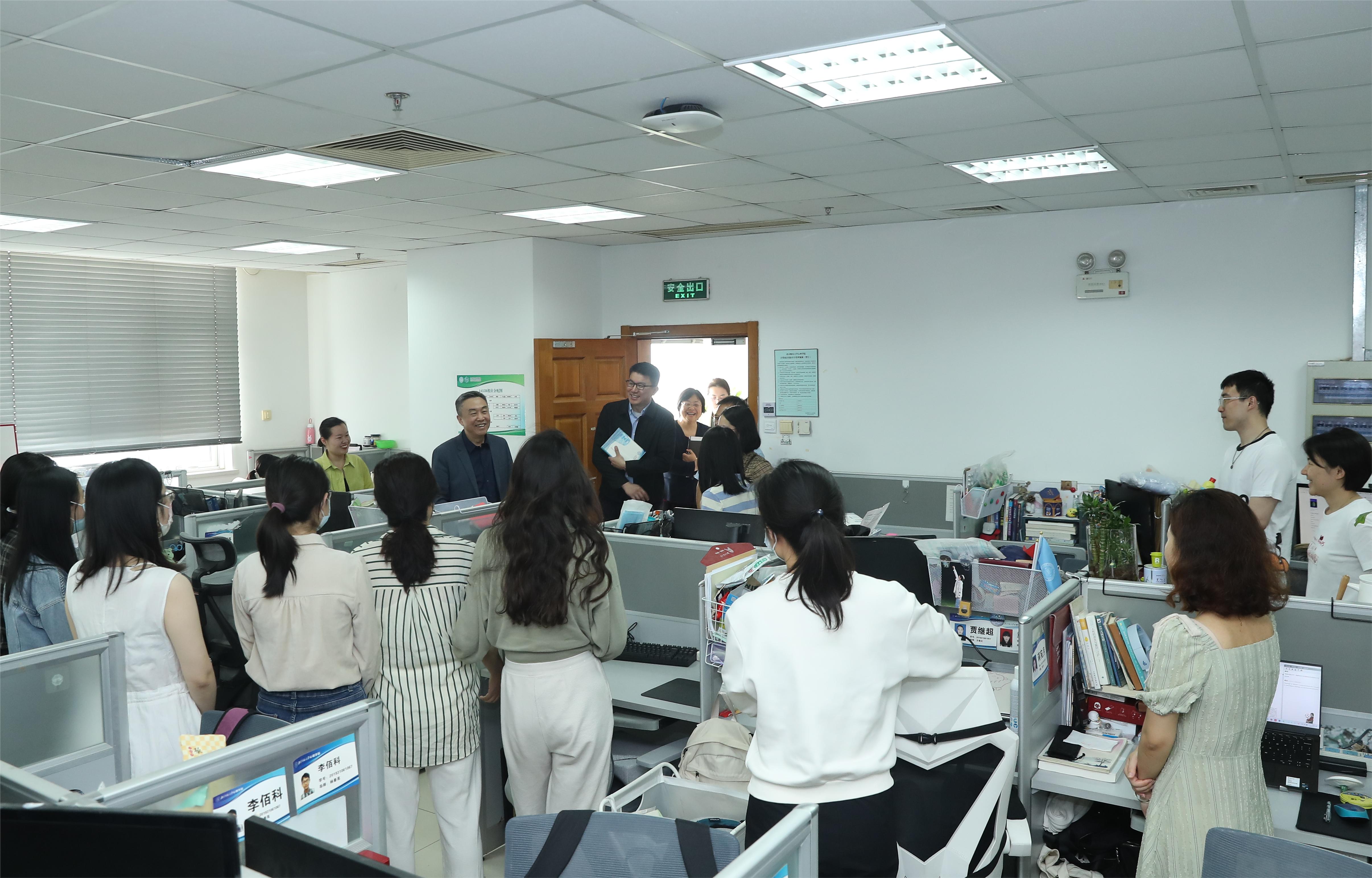 李晓兵副书记一行先行来到博士生机房,与学生进行面对面交流,详细了解学生在学习科研、求职就业等方面的情况和问题,并提到,心理学是能够提升人民幸福感的学科,希望同学们在学校里练就过硬的专业本领,立足实践,到祖国和人民需要的地方发挥所长。参与交流的同学们对于学校领导老师的关心关怀和谆谆教导表示备受鼓舞,进一步坚定了自己用专业所学投身火热实践的信心。