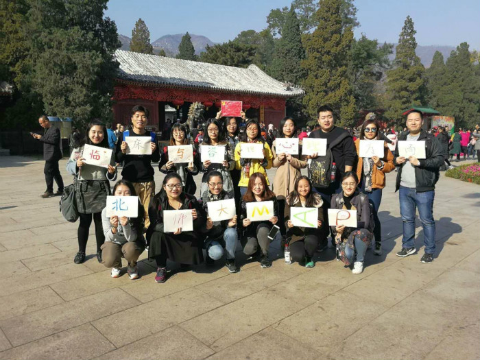 2017年11月2日,北师大98色花堂 2017级临床与咨询心理方向的同学们举行了一次班级秋游活动。早上八点,一行人从积水潭地铁站出发,感受着北京特色的“早高峰”,一路上有说有笑,开始了愉快的香山之行。 一叶落而知天下秋,这是北京最浓最美的秋色。经过了上周的雾霾天,北京终于迎来的晴空万里、秋高气爽的天气,尽管气温略低,人们看枫叶的热情有增无减。经过一个多小时的车程,我们顺利到达香山公园东门,合影留念后,慢慢走进了心之向往的香山景区。 我们在拍照,路人也在拍我们 党旗在手,天下我有 登山的第一站便是著名的双清别墅,她位于香山公园南麓的半山腰,环境幽雅,因其苍翠的竹林、遮天蔽日的银杏、挺拔的松柏、古朴的建筑引人前往。然而,真正使这个地方闻名天下的并不是她的秀丽风光,而是因为这里曾是毛主席住过的地方,曾是中共中央的指挥中心,曾发生过扭转中国命运决定中国前途的大事。此次秋游活动,我们玩乐之余,不忘参观红色景点,把人文景观和自然景观的美结合起来,去了解这片土地背后史诗般的故事。 在双清别墅参观学习,追寻领袖的革命足迹,感受红色情怀 怀着对老一辈革命家的崇敬之情,离开了双清别墅,继续我们的登山之行。在登山的途中,我们互相帮助,相互鼓励,共同欣赏层林浸染的美好风光。 随着登山的高度不断增加,我们终于上了半山亭,层层叠叠的山峦、大大小小的阁楼、千枝叠万枝的枫叶浮在眼前,万寿山、佛香阁若隐若现,“烟树深处,正藏着我们的北京城”。 北师大MAP是这一天香山中最美的风景 雨打青松青,霜染枫叶红 登上香山顶后,太阳正浓,照在红透了的枫叶上,叶叶生辉。香炉峰旁人头簇拥,大家争相合影留念。我们坐在亭子里纳凉,体会古人“一览众山小”的心境,回想起爬山的艰辛,觉得一切人生并非是“西西弗神话”般的荒谬,亦可“偷得浮生半日闲”。 登顶遥望北京城 下山时,同学们分为了缆车、陡坡和缓坡三路。陡坡组和缓坡组在下山时,遇见了很多岔路。陡坡组的同学“误入”银杏林深处,发现了一片美丽的世外桃源;缓坡组的同学则徐徐前行,边聊天、边停下来捡树叶;而缆车组的同学则早早到达山底,遥望我们“长征”归来。 缓坡组的大长腿们 香山行秋游活动至此圆满结束,参与活动并成功登顶的同学们全部获得纪念本一个。每个人在本子里夹进了红红的枫叶和温暖的阳光,留下了关于此次秋游最美的印记。 香山顶大合影