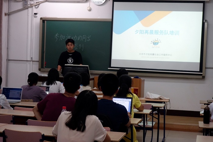 9月25号晚19:00,夕阳再晨服务队培训如期在教二104举办。北京邮电大学夕阳再晨服务队工作部副部长苏浩凡同学作为培训员为志愿者们进行培训。