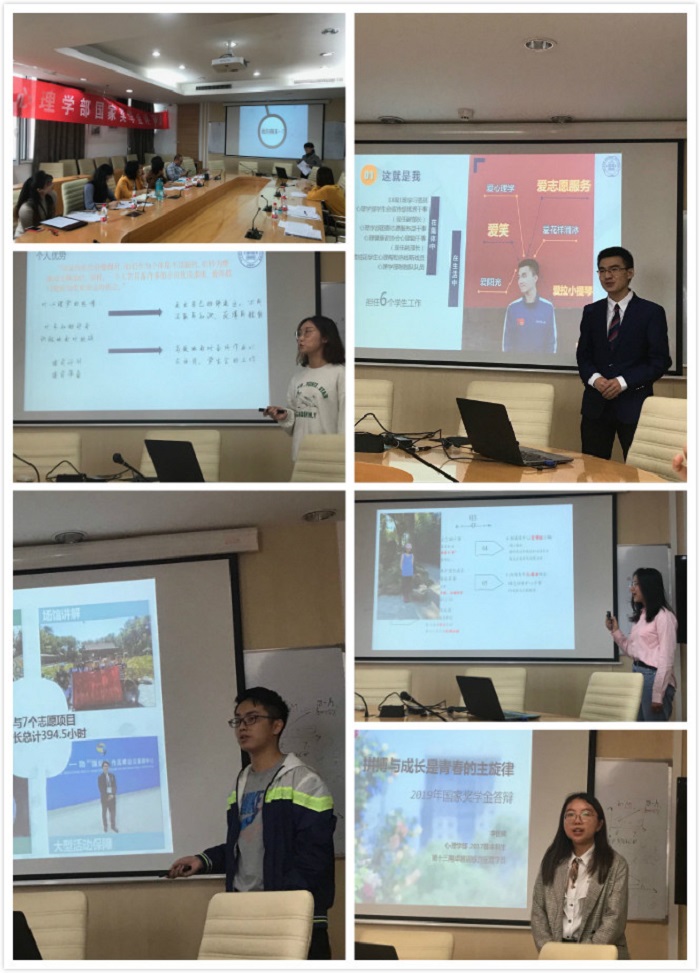 经本科生各年级推荐,我部2016级至2018级共12名国奖候选人参加了本次评审。12位候选人依次进行了每人3分钟的自我陈述,展现出了各自的风采和最为优秀的自己,让评委委员会印象深刻;随后,评审委员会针对其陈述内容进行了2分钟的提问,全面了解了各候选人的学习、生活、社会服务、生涯发展等方面情况。答辩结束后,评委老师根据各位同学的答辩情况进行了热烈讨论。