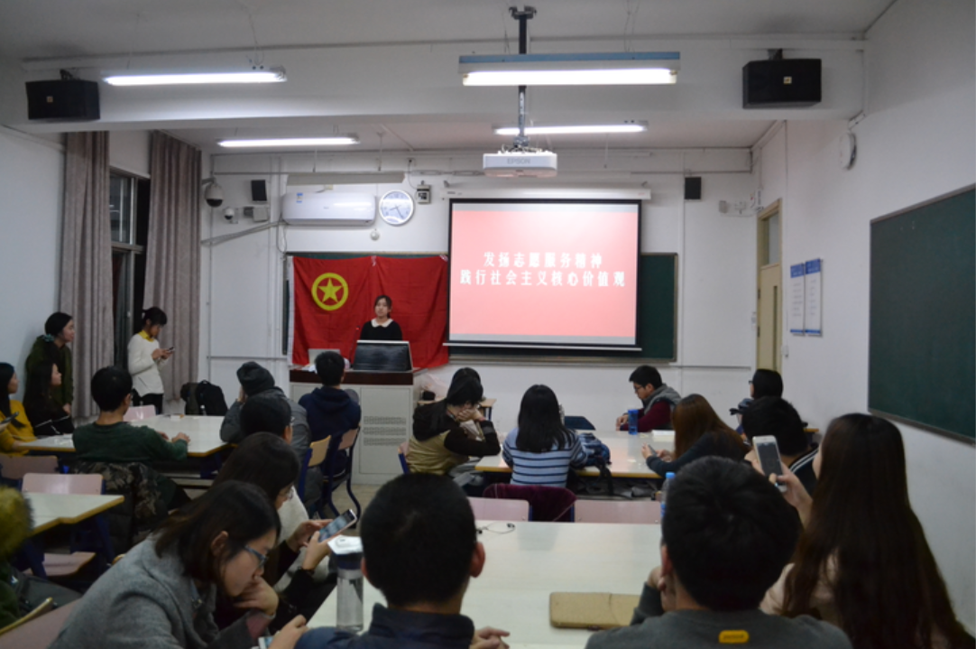 2016年11月10日星期四晚上20点,心理学院15级三班“我与社会主义核心价值观”主题班会在教二204成功召开,本次班会由班长许琳旋同学主持,生活委员曹玉卿同学策划,15级三班全体同学参与。 首先,同学们通过抽号分成4组,分组整齐坐好。全体起立齐唱团歌。 然后,许琳旋同学向大家介绍了社会主义核心价值观的基本内容,丰富同学们对社会主义核心价值观的认识,并请同学就“民主”和“爱国”两个主题发表感言,同学们积极参与。期间邀请柴子琳同学向同学们分享志愿经验,柴子琳同学真诚又活泼的分享、有意义又十分有趣的经历引得同学们阵阵笑声和掌声。 为加深同学们对社会主义核心价值观基本内容的理解和认识,我班进行了别开生面的“描述猜词”游戏,同学们都积极参与到活动中来。 最后,为提高同学们积极参与社会主义核心价值观的践行力度,我班开展了“社会主义核心价值观知识竞赛”活动,抢答积分制的比赛规则和实用的小礼物极强的调动了同学们的积极性,让同学们竞赛活动时也了解到社会主义核心价值观的基本内容、基本体系、核心目的等方面知识。 通过本次会议,每位同学都对社会主义核心价值观有了更深刻的认识,同时,也对如何践行社会主义核心价值观有了更深刻的想法。