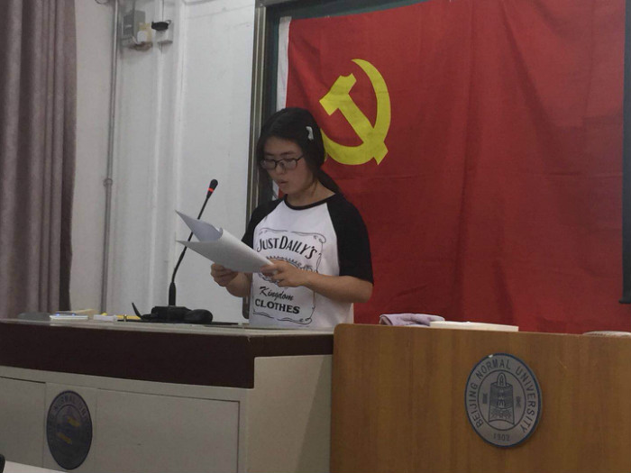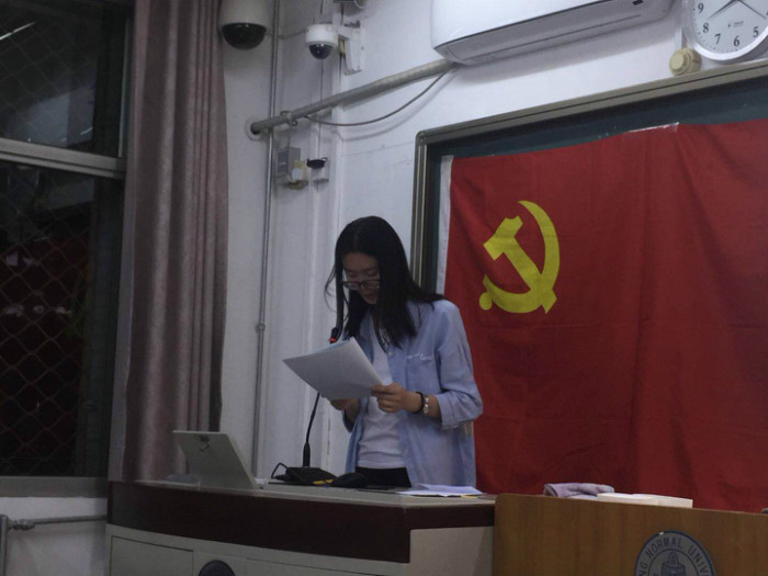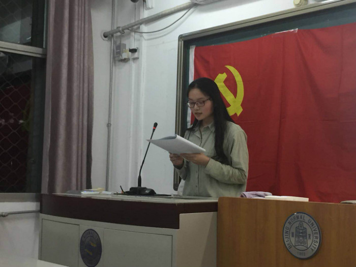 5月9号晚,本学期第一次、第二次98色花堂 本科生党支部党员发展大会于教二105在庄严的《国际歌》合唱声中拉开序幕。两次会议由支部书记陈子卓主持,分别针对发展对象史博文、武晓红和刘畅同志,以及刘亭序、李一行和周婧怡三位同志的入党申请及相关情况进行了讨论和表决。大会共有9名正式党员参加,超过应到会正式党员人数的半数,没有到会的7名正式党员出具了书面意见。 第一次党员发展大会开始,主持人陈子卓同志对本次大会的流程及发展对象顺序进行介绍,随后三名发展对象逐一宣读入党志愿书。三名发展对象结合自身实际,陈述了自己的入党动机,表达了对中国共产党的向往,表示愿意服从党的领导,对党忠诚,积极工作,坚定不移跟党走,为共产主义事业奋斗终身。 随后,三位发展对象的入党介绍人分别宣读介绍人意见,其中武晓红同志的第一介绍人书面意见由支部书记陈子卓同志代为宣读,他们肯定了发展对象在培养考察期间的思想觉悟和突出表现,并且针对他们在生活学习中的不足之处提出了批评和建议。 第一介绍人的意见宣读完毕后,与会的同志就三位发展对象的优点和不足之处进行了民主评议。随后进行全体正式党员进行无记名投票。支部党员赞成接收史博文、武晓红和刘畅三位同志为中共预备党员。三名同志也表示将在实践中不断锻炼自己,更努力地为身边的同学服务,努力成为一名优秀的共产党员。