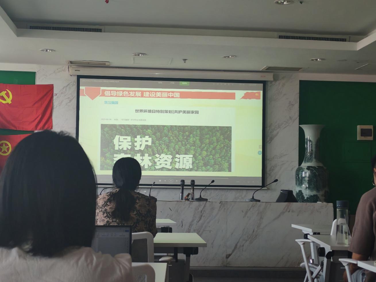 首先开展的是主题为“倡导绿色发展,建设美丽中国”的主题团日活动,由团支书付晨露同志主持。活动第一项,付晨露同志给大家介绍了世界环境日的由来和发展。以四川省制作的《美丽中国我先行》宣传片为例,呈现了我国环境工作的开展现状。更进一步,同志们观看了新华社发布的《老兵治沙队的绿色守望》专题短片,该片讲述了近年来塔克拉玛干沙漠边沿治沙工作的不易和终有成效的可喜。