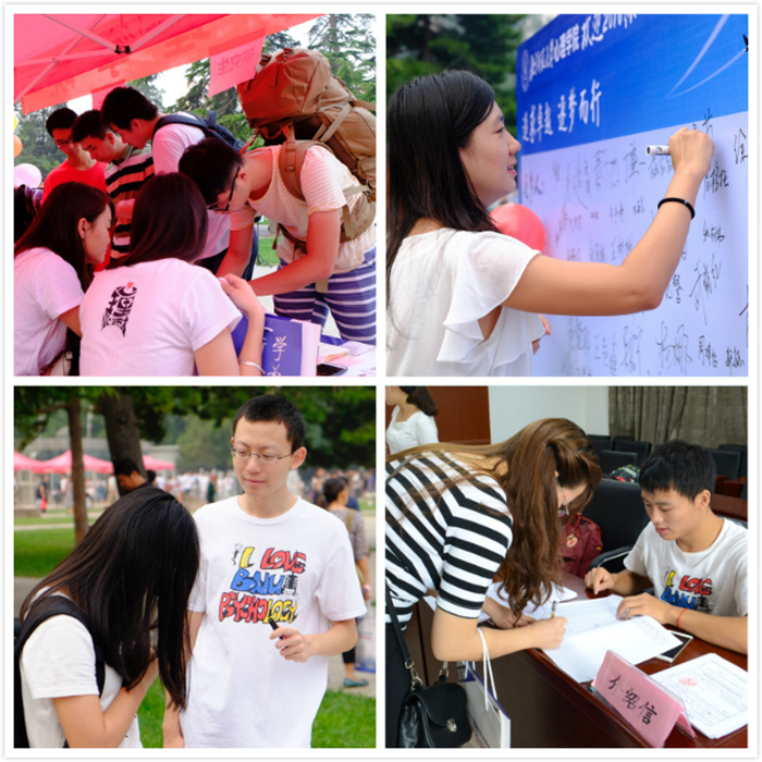 9月4日,心理学院迎来了132位2016级本科新生、46位学术硕士、224位专业硕士和28位博士研究生。我院分党委书记乔志宏老师、副书记王瑞敏老师在现场安排部署迎新工作,分团委书记史佳鑫老师、2016级新生辅导员曹昌健、张照鹏老师组织志愿者开展各项迎新工作。在志愿者的帮助下,新生们顺利完成了各项新生注册手续。 在迎新站中,新生们在迎新展板前签下自己的名字,并举起有趣的标语牌留影纪念。随后,志愿者耐心地为新生办理签到、盖章、宿舍入住等手续,带领新生参观校园,讲解近期日程安排。
