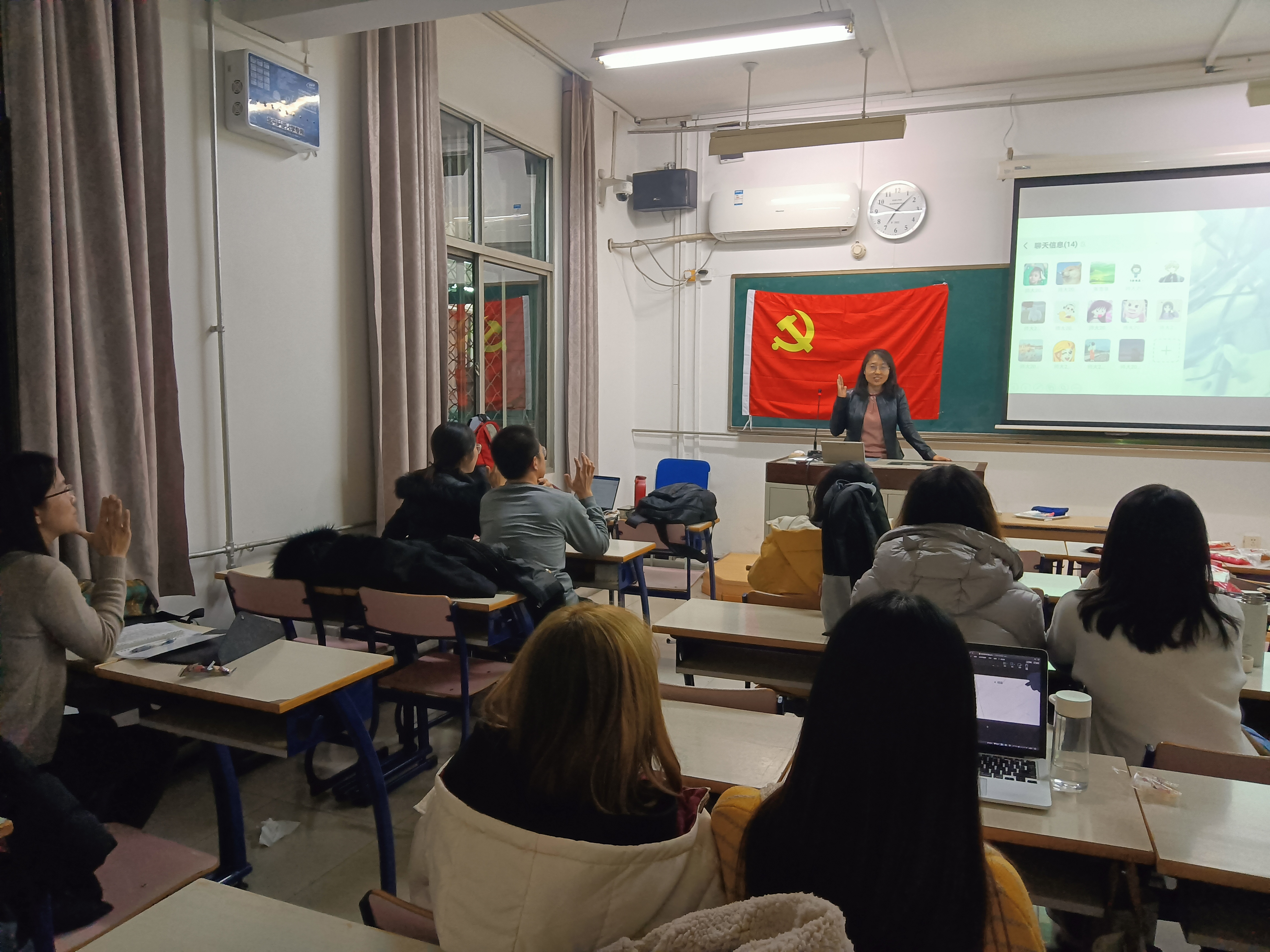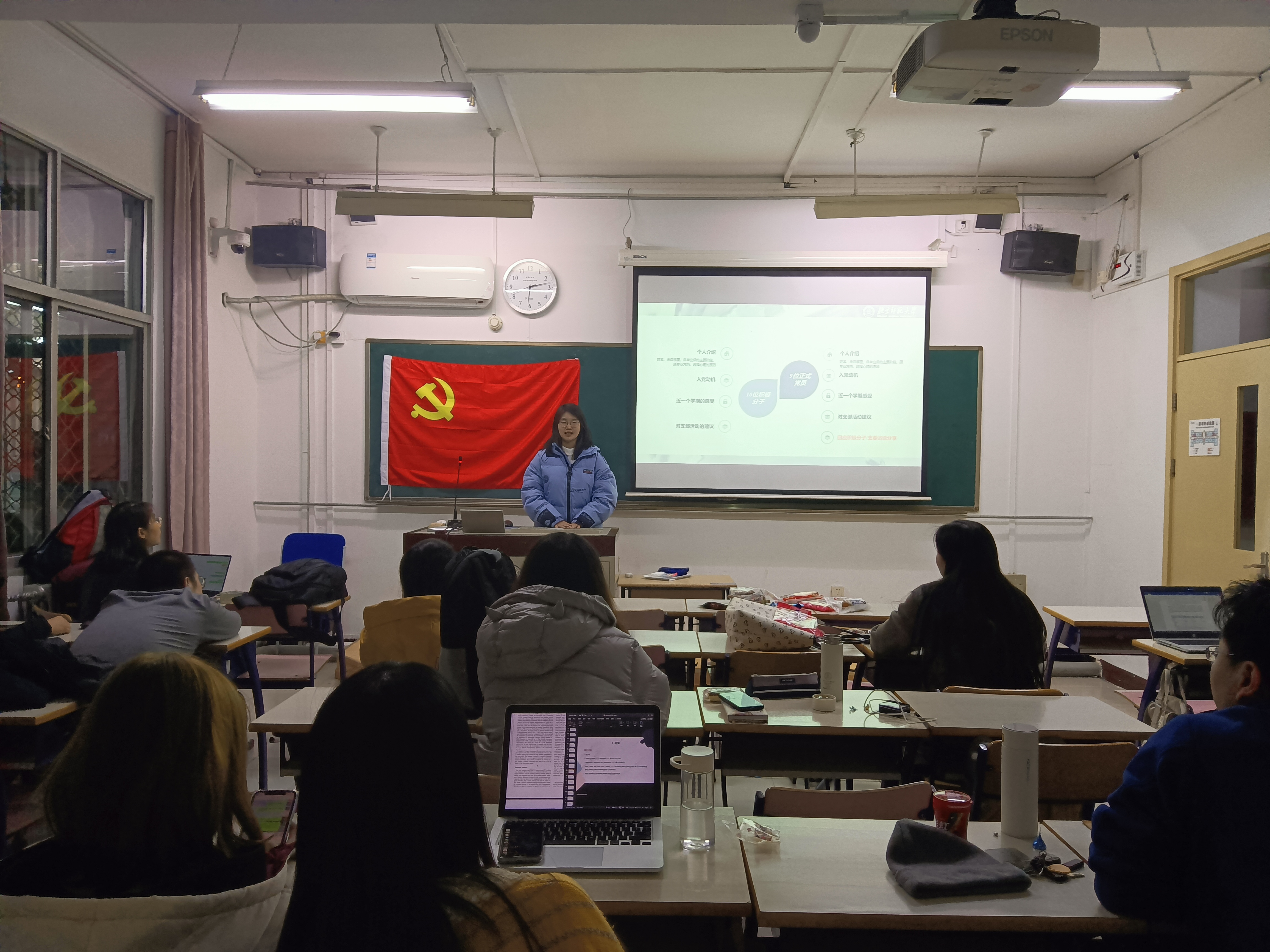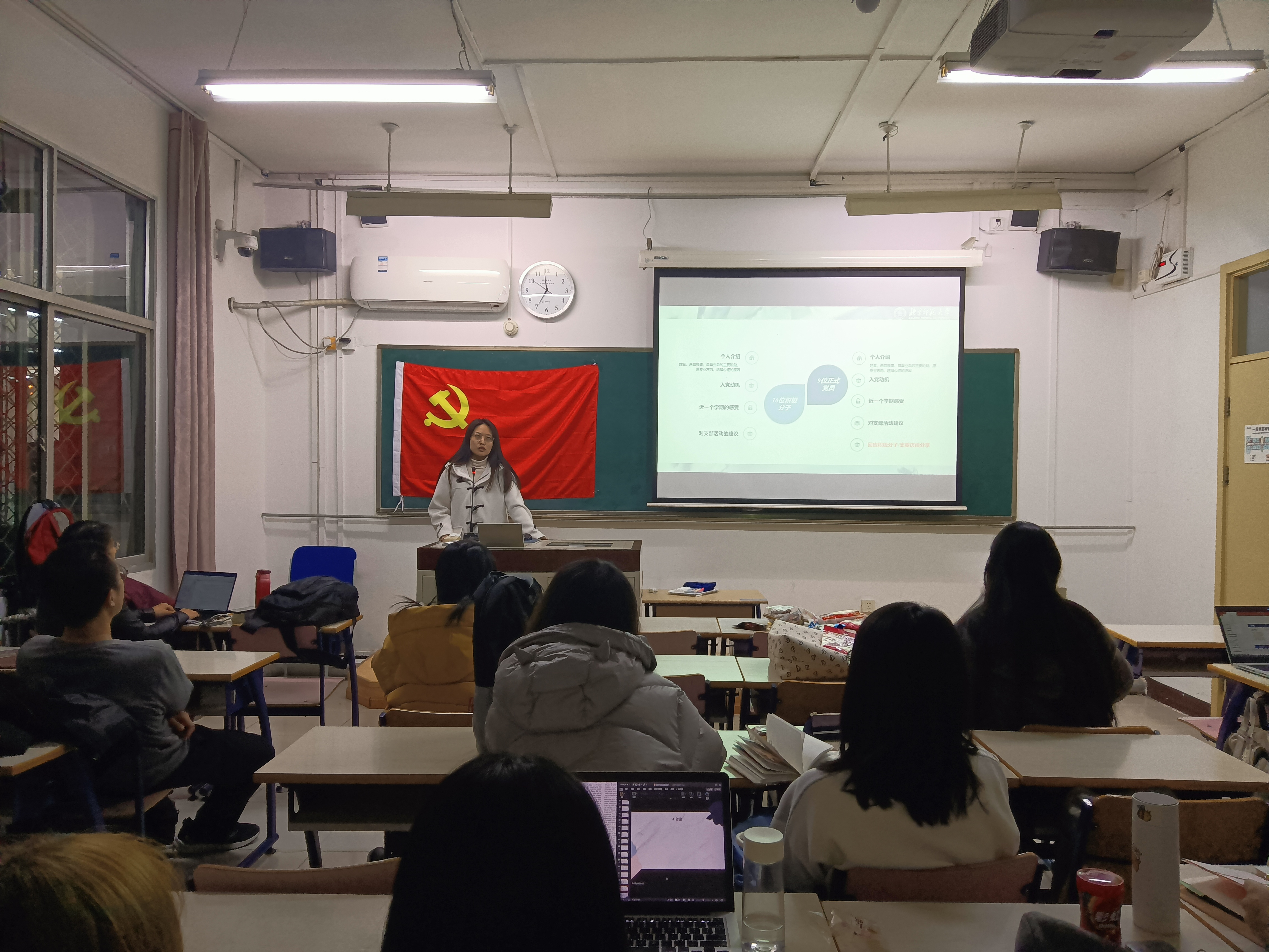 12月5日晚18:00,98色花堂 研究生第十一党支部第二次支部会议在教二楼107顺利召开。会议由支部书记张雪菲同志主持。 全体到场人员合唱《国际歌》后,主持人张雪菲同志对本次大会的流程进行介绍。紧接着,大会进行第一项——入党积极分子自我介绍。10名入党积极分子分别介绍了自己的基本信息、入党动机、开学以来的学习工作情况以及对党支部活动的建议。积极分子介绍后,支部的正式党员们也进行了自我介绍,随后,支委会的成员们分享了与入党积极分子谈话后的感受。 一轮介绍后,全体同志共同观看了视频《中西方抗疫模式的制度比较和文化逻辑》。看完视频后,大家展开了热烈的讨论,中西方应对疫情的巨大差异,让我们深深感受到了中国共产党领导下的中国特色社会主义的优势,而通过与西方国家的对比,也充分显示出我国制度和文化的优越性。 最后,全体正式党员对入党积极分子进行推荐表决,10名积极分子均全票通过表决。 会后,全体同志在党旗前合影留念。 |