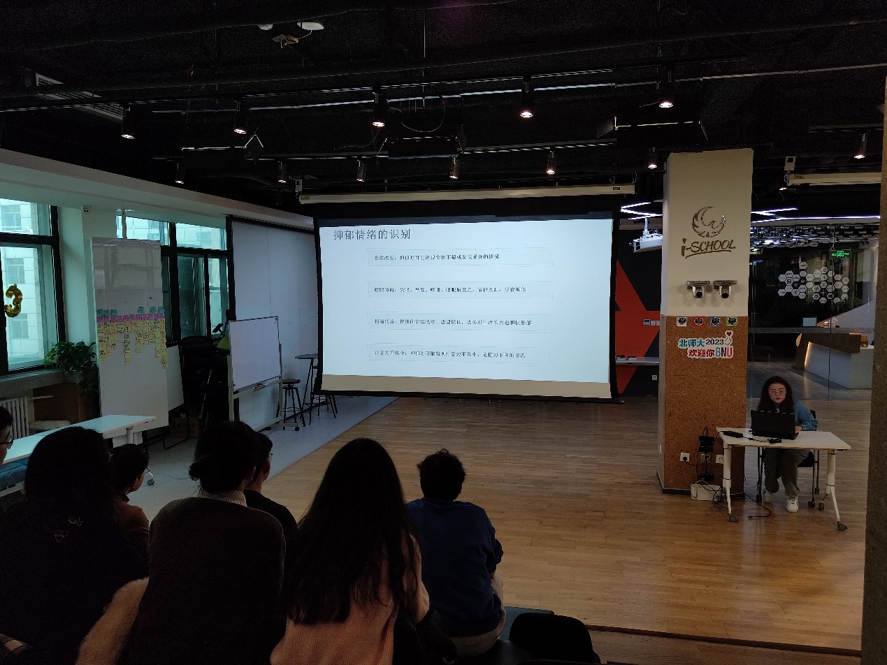 在各支部成员相互熟悉后,研究生第七支部的刘东雪同志以“抑郁情绪的识别及应对”为主题进行心理健康科普,主要为大家分享了抑郁情绪的识别、应对和预防方式。刘东雪同志详细阐释了抑郁情绪和抑郁症之间的区别和关系,从激素水平与脑区变化的科学研究视角介绍了抑郁症对个体造成的影响,描绘了能识别抑郁情绪的特定表现,并从自助和寻求帮助的角度具体介绍了抑郁情绪的应对方式,最后分享了预防抑郁情绪的方法,包括保持乐观心态、建立良好的人际关系等。