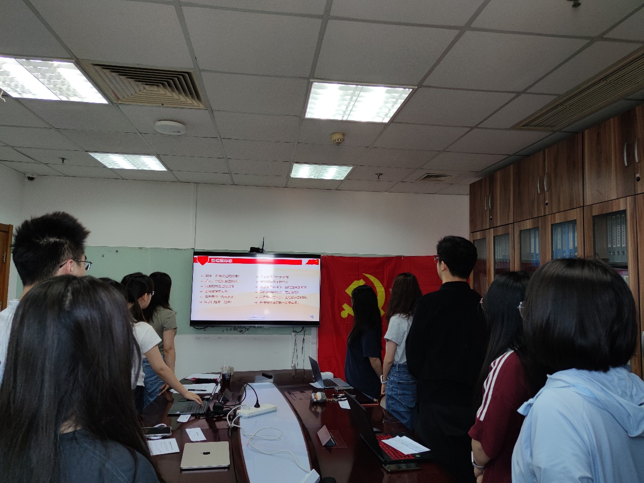 会议开始,党支部全体成员起立,合唱《国际歌》。