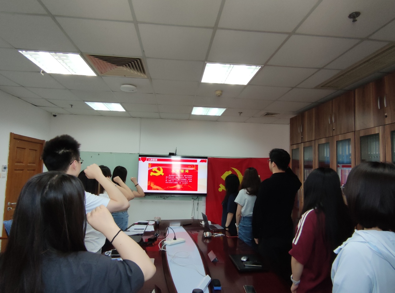 随后,党支部书记宣读支部大会决议,石佳霖同志顺利转为正式党员。石佳霖同志发表转正感言,感谢党组织和同志们的认可与支持,未来将在学业、工作等方面更加严格要求自己,不断提升各方面的综合素质。 最后,在孟玉洁同志的带领下,全体成员重温入党誓词。