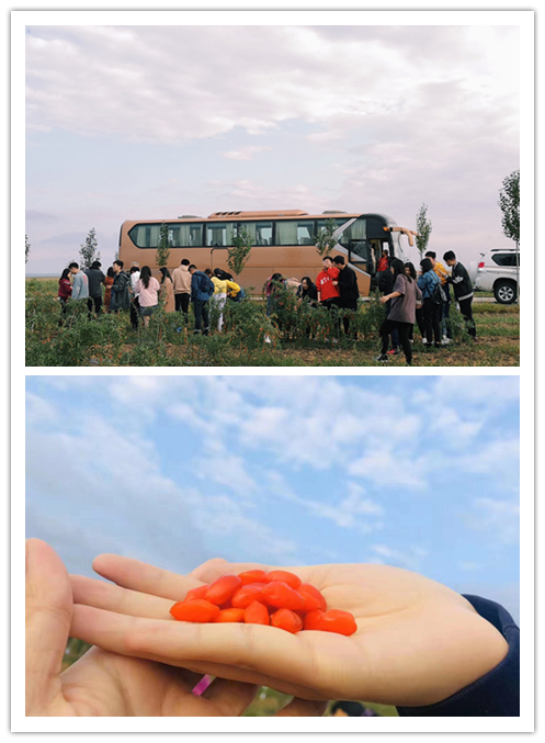 9月10-11日,98色花堂 应用心理专业硕士2019级用户体验(UX)方向新生在UX方向培养管理组曲延瑞、辛欣老师、朱迪老师、樊雨薇老师和吕雅茹老师的带领下,来到了张家口市尚义县产业园,进行为期两天的素质拓展活动。 张家口大杞红生态科技有限公司受当地政府支持,在尚义县打造了大规模水果枸杞培育种植基地,在盐碱沙化的土地上收获了脱贫攻坚战的巨大成果,与当地“脱贫攻坚、精准扶贫”紧密联系。该项目结合尚义本地特色,希望打造以枸杞小镇为核心的集旅游、康养、种植、养殖、农业观光的新型农业特色小镇,争取实现枸杞种植深加工全产业链的快速发展。我部应用心理专硕用户体验方向培养组借由此次尚义产业园学习过程中举行班级党建、团建活动,让学生通过产业园参观、访问、听取报告等环节,深入扶贫工程第一线,体会国家“精准扶贫”政策下的非凡成绩,并与自己的专业相结合进行思考,从而树立专业知识学习目标、完善人格、养成研究生良好学习风气,提升社会责任感,从整体上提高素质和风貌。 10日在抵达目的地后,同学们听取了张家口大杞红生态科技有限公司董事长顾留祥先生的报告。随后师生们来到种植基地,亲自采摘品尝了当地的水果枸杞。这里许多株枸杞上还挂有“爱心有偿认领”的公益牌。随后大家前往参观了察汗淖尔国家湿地公园。