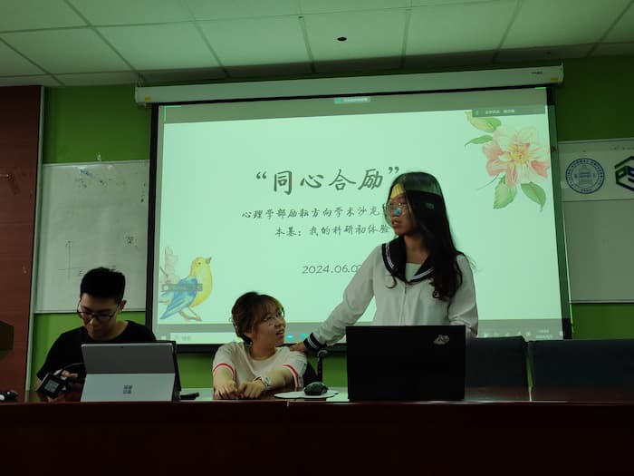 首先,沙瑞欣同学就本基主题《人工人和人的内向洞悉:不同反馈条件下AI与人类的元认知能力比较》的开题从实验引入、实验设计和实验预期等环节进行介绍,让在场的23级同学对本基有了进一步的认识。