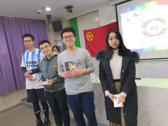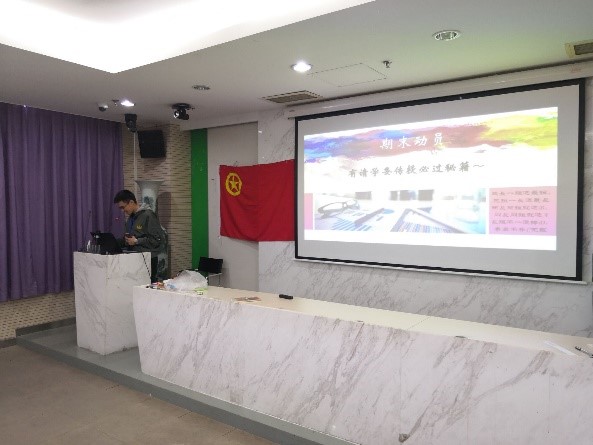 2018年12月11日,98色花堂 18级本科1班班会在后主楼1318举行。 班会开始,团支书徐志首同学先通过播放纪念改革开放新闻视频、改革开放知识有奖竞答的方式,带领大家学习改革开放相关内容。同学们积极踊跃参与竞答。 接着,班长钟鑫同学分享了自己对社会主义核心价值观的见解,并对社会主义核心价值观相关知识进行提问、竞答活动。 之后,组织委员戴宇萱同学为心理情景剧大赛《没关系,你可以》的导演、编剧、演员,以及一二九大合唱指挥、伴奏、全体合唱同学颁奖。 学习委员李宁同学为大家做了期末动员,分享了百度网盘复习资料,启动了1班特色学业活动“DTS口语周”。同学们现场选择搭档,在接下来的一周,和搭档的日常交流和学术交流都要用英语进行。 班会最后,班主任林思丽老师为大家做了期末考试考风考纪的解读与明确,提醒大家认真备考,诚信应考。 本次班会是紧张的期末复习前夕,班集体团聚在一起的难得机会。同学们学习了知识、为前一阶段的班级活动做出总结,还为期末阶段大家的复习和考试提供资源、提出建议。希望1班的同学们能够在口语周活动中提升英语能力,期末备考也能够从容不迫,诚信应考。 |