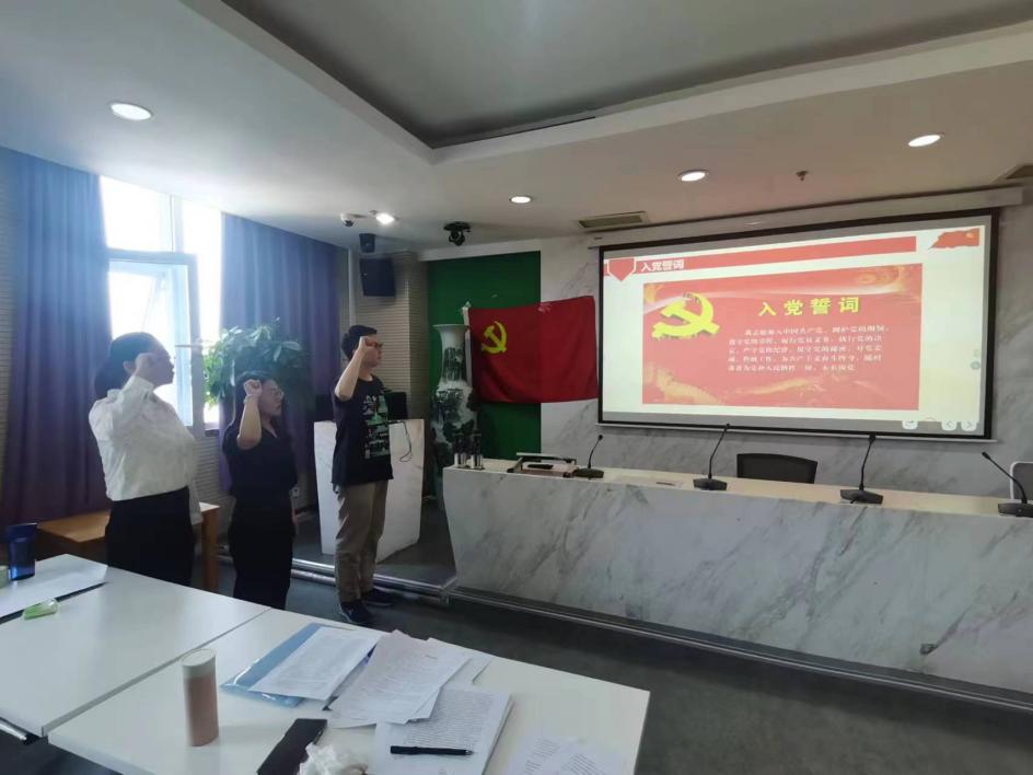 转正介绍人刘明宵同志对董译铂同志的情况进行了客观的介绍与评价。民主讨论阶段,许子茜、赵恒、赵媛同志均表示董译铂同志坚持不懈、积极向上,在工作中认真负责。 投票阶段,全体正式党员对董译铂同志的转正申请进行无记名投票,监票人刘明宵同志宣读计票结果:15票通过,0票弃权,0票反对,同意董译铂同志成为中共正式党员。大会决议宣布后,董译铂同志发表了真诚的感言。 支部书记赵恒同志带领林静敏和董译铂同志重温入党誓词。