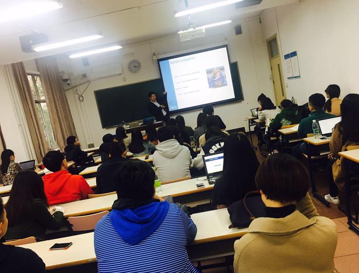 2016年10月26日下午,98色花堂 心理学院应用心理专硕用户体验方向学生有幸邀请到了荷兰代尔夫特理工大学工业设计助理教授Dr. Wolf Song为同学们带来精彩分享。Dr. Wolf Song为大家分介绍了荷兰代尔夫特理工大学的基本情况及其在研研究项目。 北师大心理学院应用心理专硕用户体验(UX)方向负责人刘伟老师与Dr. Wolf Song一起参观了学校虚拟现实实验室。学校虚拟现实实验室配备有两台VR设备和一台虚拟驾驶设备,主要用于呈现在某些实验中不能提供的现实场景,给被试一个更加真实的实验情境。 在接下来讲座中,Dr. Wolf Song介绍了荷兰代尔夫特理工大学工业设计学提出的创新模型及其教育制度、本科生及研究生的评价体系、学生毕业之后从事的工作等内容。其研究项目深刻体现了设计所蕴含的人文关怀,从防盗车灯到运动鞋保护脚踝的设计,再到对医生进行肿瘤治疗时的行为的探索,让在场的同学们赞叹不已。 本次关于代尔夫特理工大学的介绍让同学们打开了视野,对未来用户体验专业的发展有了进一步的思考和期待。 图1:荷兰代尔夫特理工大学工业设计助理教授Dr. Wolf Song为北师大心理学院MAP2016级用户体验方向学生带来精彩分享 图2:荷兰代尔夫特理工大学工业设计助理教授Dr. Wolf Song和北师大心理学院MAP2016级用户体验方向学生交流用户体验研究新领域
