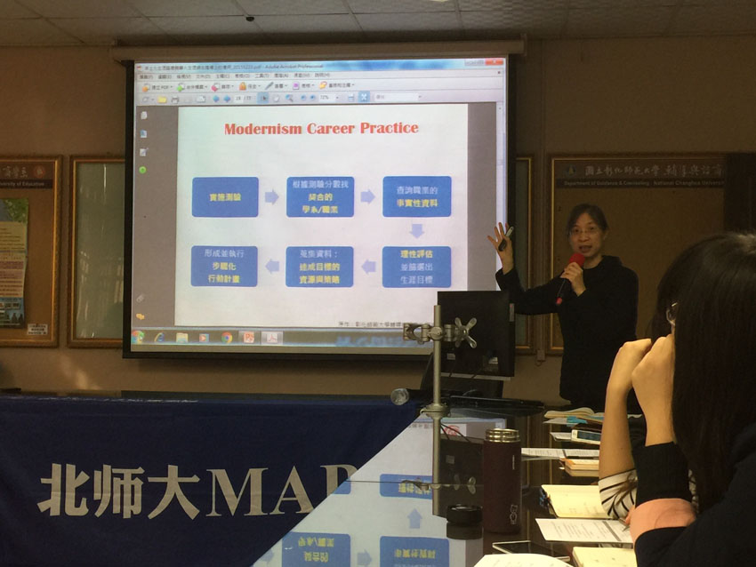 刘淑慧老师为北师大心理学院2016MAP台湾实践行同学们讲《本土化生涯咨商与华人生涯网在职场上的应用》